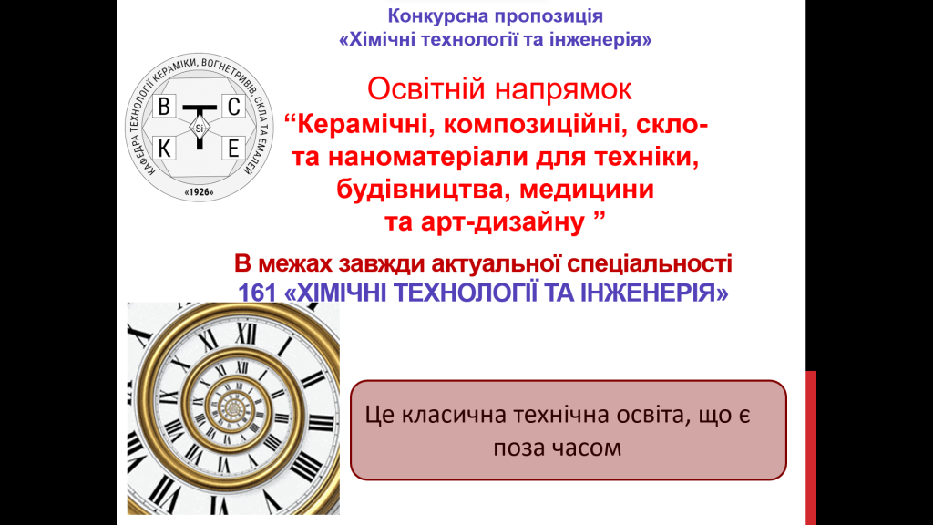 🔥27 листопада 2023 року в рамках профорієнтаційної роботи кафедри професор кафедри Борисенко Оксана Миколаївна провела он-лайн зустрічі з учнями 11 (11-А, 11-Б, 11-В) класів КЗ «Пісочинський ліцей» та презентувала доповідь про 🏆Національний технічний університет «Харківський політехнічний університет», 161 спеціальність «Хімічні технології та інженерія» та освітній напрям «Керамічні, композиційні, скло- та наноматеріали для техніки, будівництва, медицини та арт-дизайну».