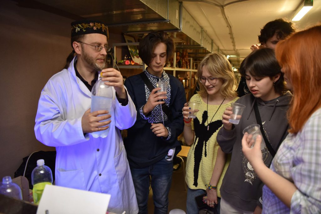 16 травня кафедра технології жирів та продуктів бродіння традиційно приєдналася до заходів, присвячених міжнародному Дню Світла, що вперше відбувались в укритті на території ліцею “Обдарованість”. Серед числених наукових демонстрацій та інтерактивних експериментів від викладачів НТУ “ХПІ” вихованці Ліцею та інших шкіл могли наочно ознайомитись з тією роллю, яку відіграє світло у технології напоїв та для їхнього аналізу. А також – “спробувати науку на смак”: флуоресцентні лимонади, які можна було приготувати просто за хвилини, не тільки незвичні і красиві на вигляд, але і можуть похвалитися корисними властивостями.