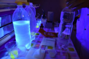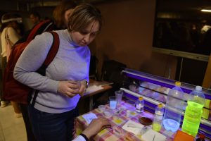 16 травня кафедра технології жирів та продуктів бродіння традиційно приєдналася до заходів, присвячених міжнародному Дню Світла, що вперше відбувались в укритті на території ліцею “Обдарованість”. Серед числених наукових демонстрацій та інтерактивних експериментів від викладачів НТУ “ХПІ” вихованці Ліцею та інших шкіл могли наочно ознайомитись з тією роллю, яку відіграє світло у технології напоїв та для їхнього аналізу. А також – “спробувати науку на смак”: флуоресцентні лимонади, які можна було приготувати просто за хвилини, не тільки незвичні і красиві на вигляд, але і можуть похвалитися корисними властивостями.