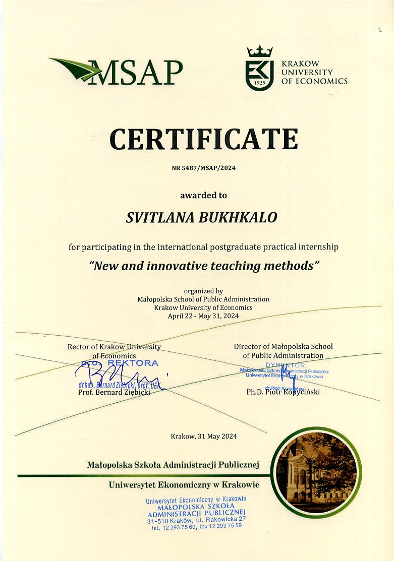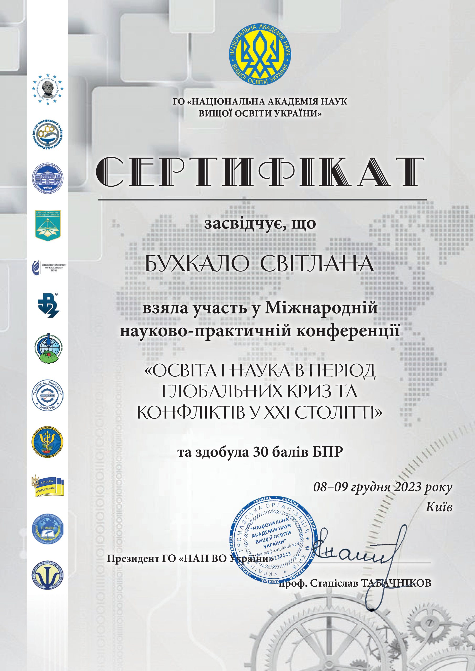 Сертифікати, дипломи та грамоти студентів та аспірантів