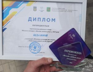 Yuriy Bida, a student of group MIT-N924b of the Department of Computer Modeling and Metal Forming, won the district stage of the City Contest “Young Person of the Year – 2025” in the nomination “Physical Culture and Sports”. The awarding ceremony was held with the participation of Oleksandr Vlasenko, Director of the Department for Family, Youth and Sports, and the head of the administration of the Kyiv district of Kharkiv.