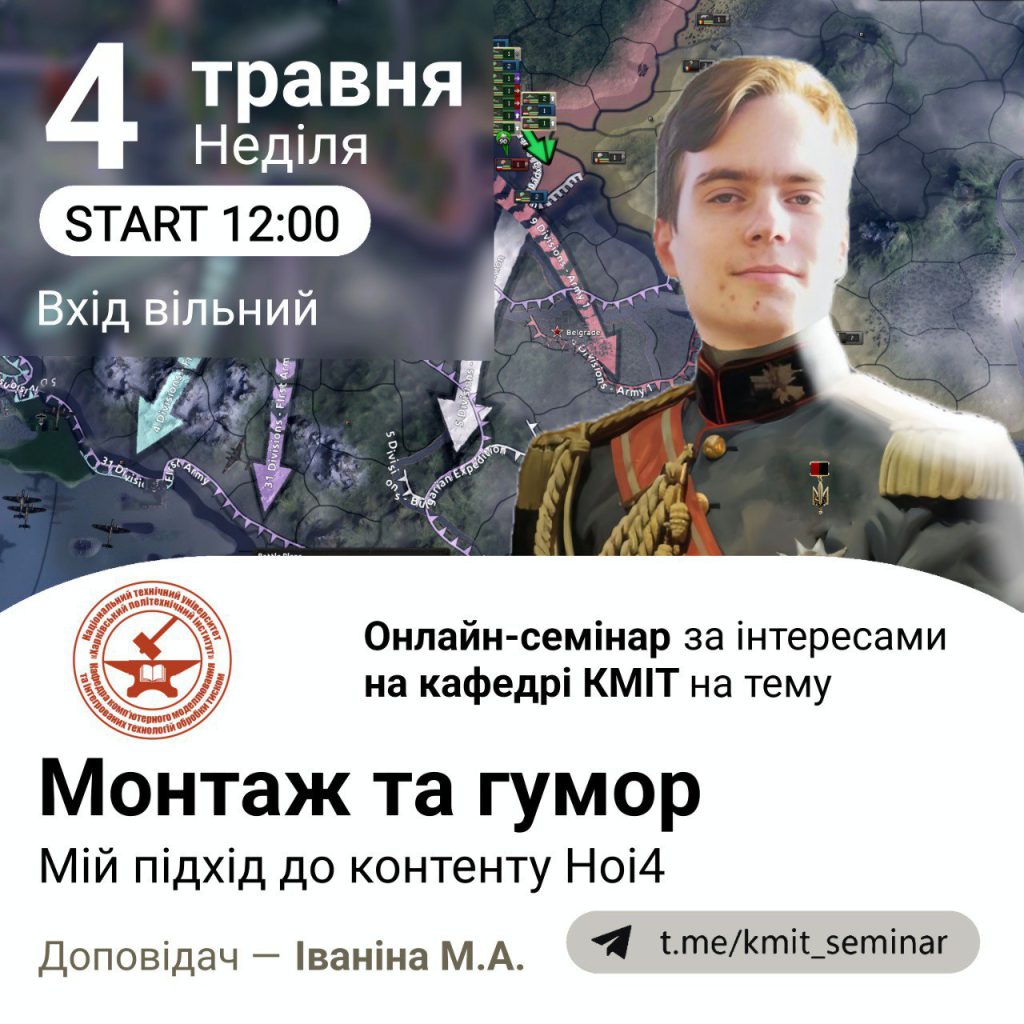 Announcement of an online seminar on interests at the Department of Computer Modeling and Integrated Technologies (CMIT) and familiarization with the promotional presentation at the link to the entrance – https://t.me/kmit_seminar