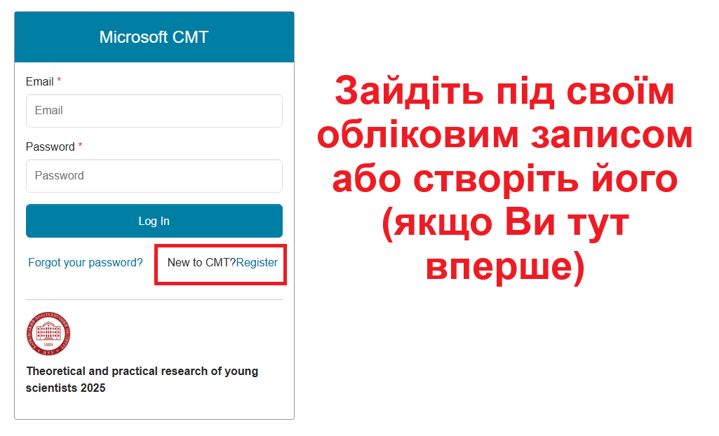 Якщо Ви ніколи не користувалися системою Microsoft CMT – необхідно зареєструватися, натиснувши відповідне посилання: