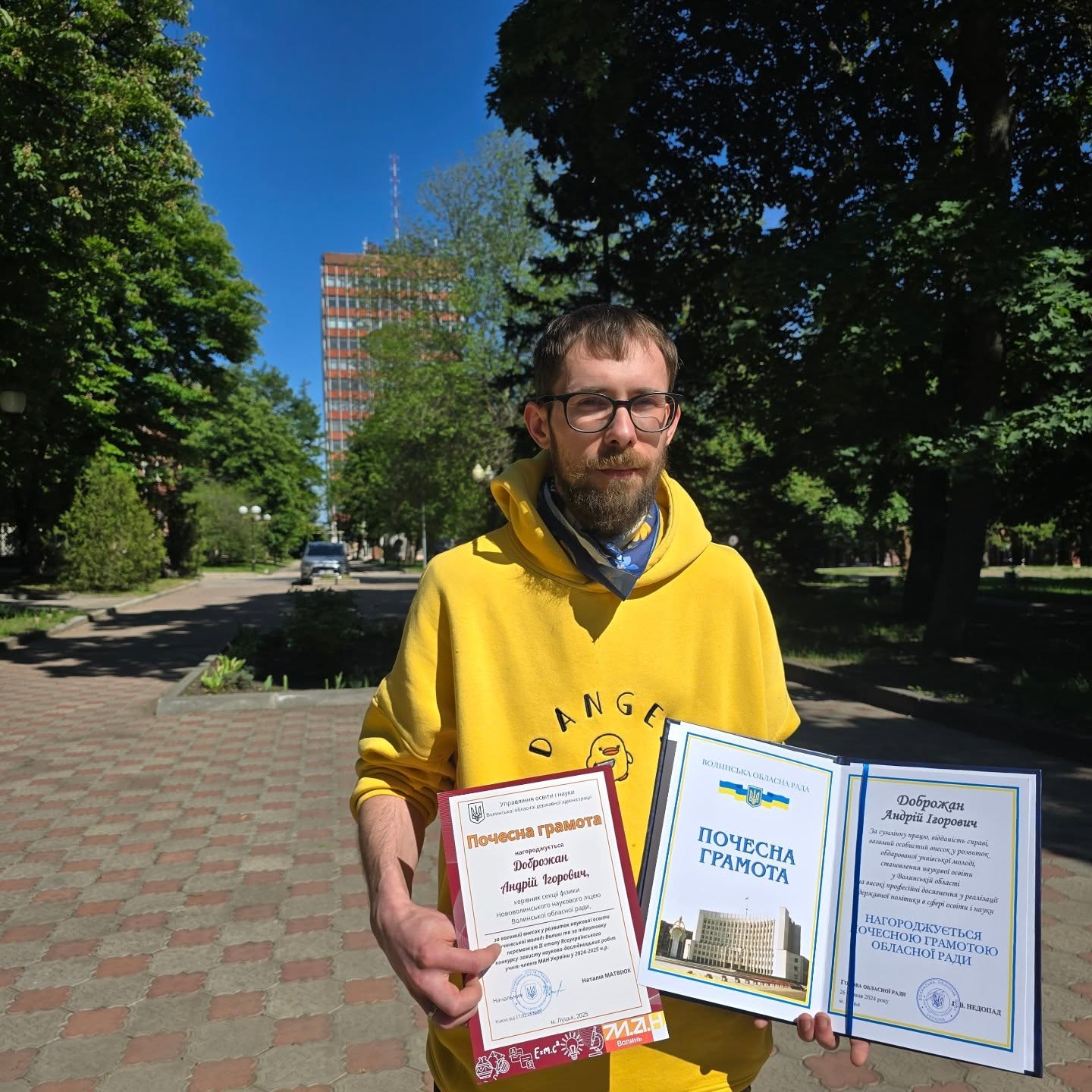 The result of fruitful cooperation between students and teachers of the Novovolynsk Scientific Lyceum and the Department of Micro- and Nanoelectronics of NTU “KhPI” was marked by two Honorary Certificates of the Volyn Regional State Administration for a significant contribution to the development of scientific education of students of Volyn. Associate Professor of the Department of MNE Dobrozhan Andriy has been preparing children for the All-Ukrainian stage of the competition of scientific works of the Academy of Sciences of Ukraine in the Applied Physics section for the second year in a row.