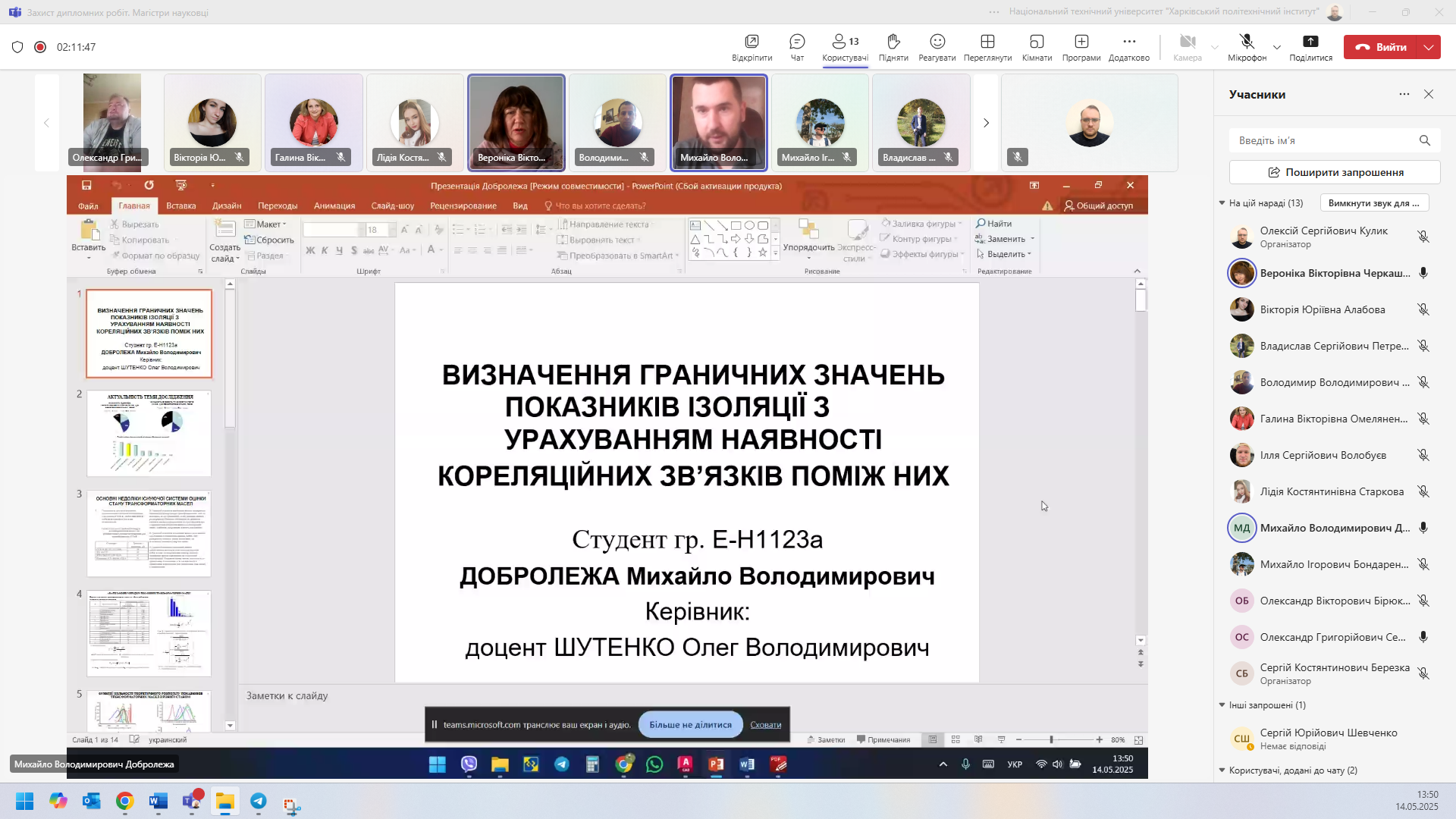 14 травня 2025 року відбувся захист дипломних робіт, що став фінальним кроком для здобувачів другого курсу магістратури на шляху до здобуття повної вищої освіти. Випускники успішно завершили навчання за освітньою програмою «Електроенергетика», отримавши не лише дипломи, але й міцні знання та практичні навички, які відкривають перед ними двері до професійного світу.