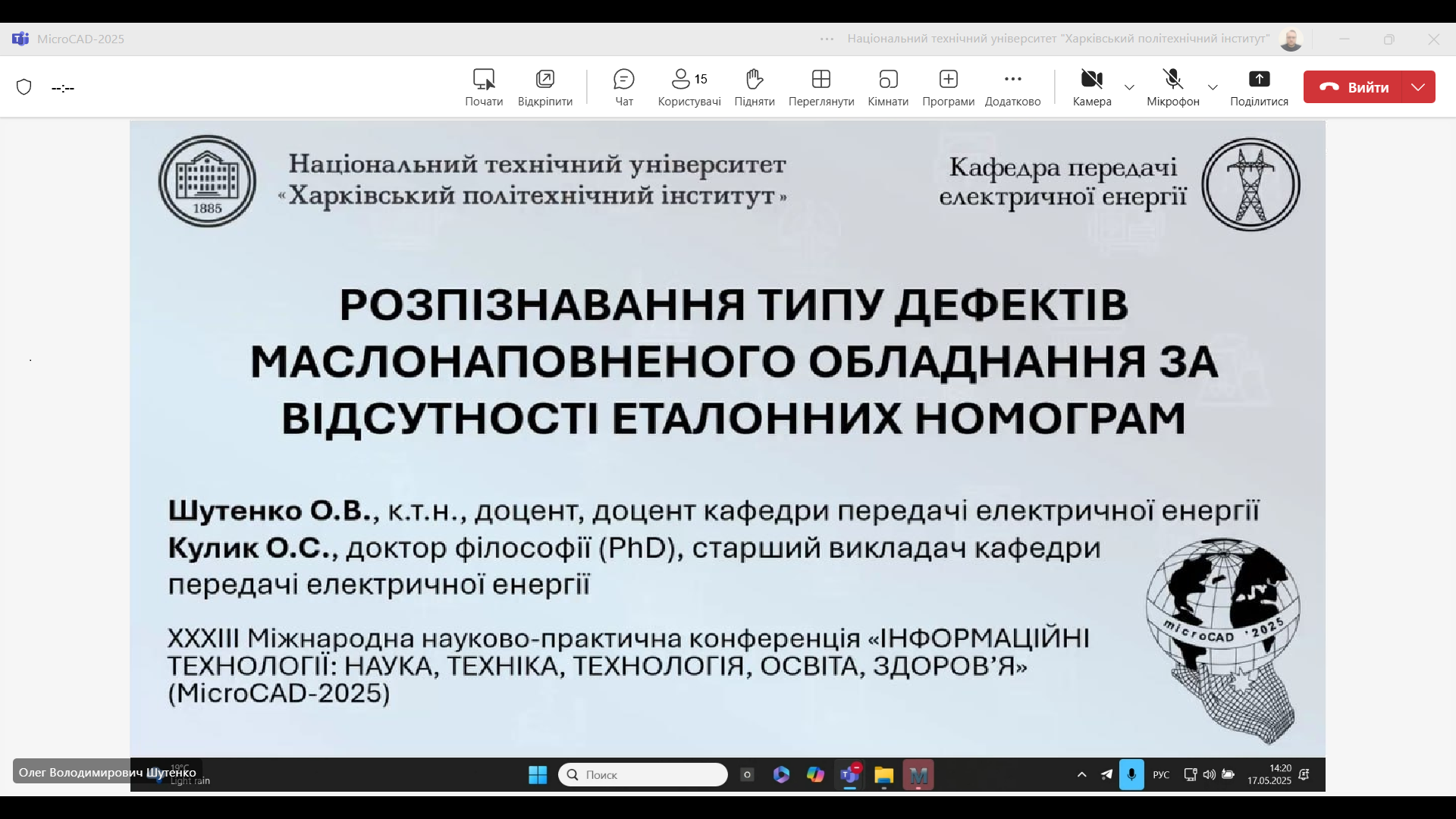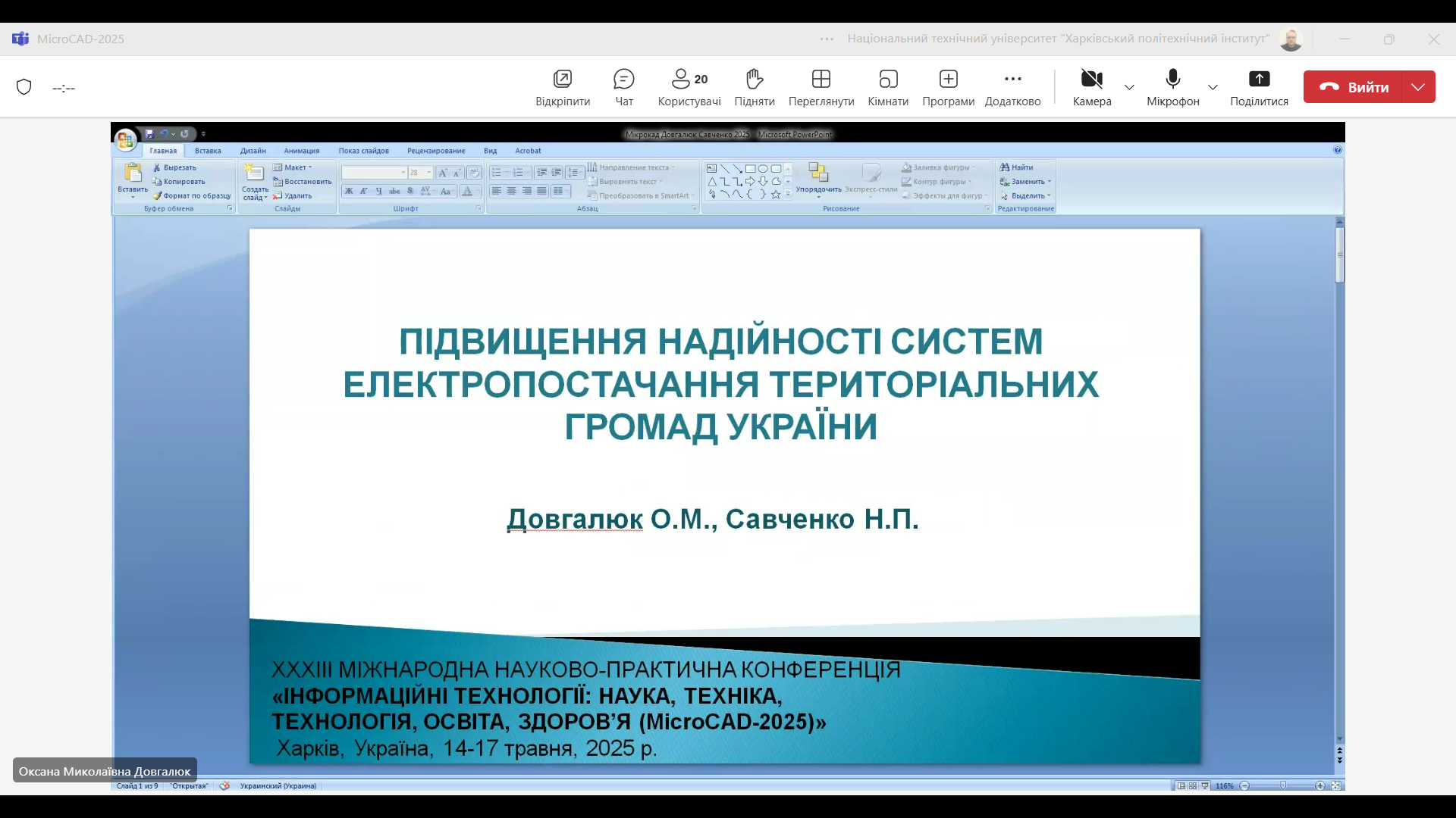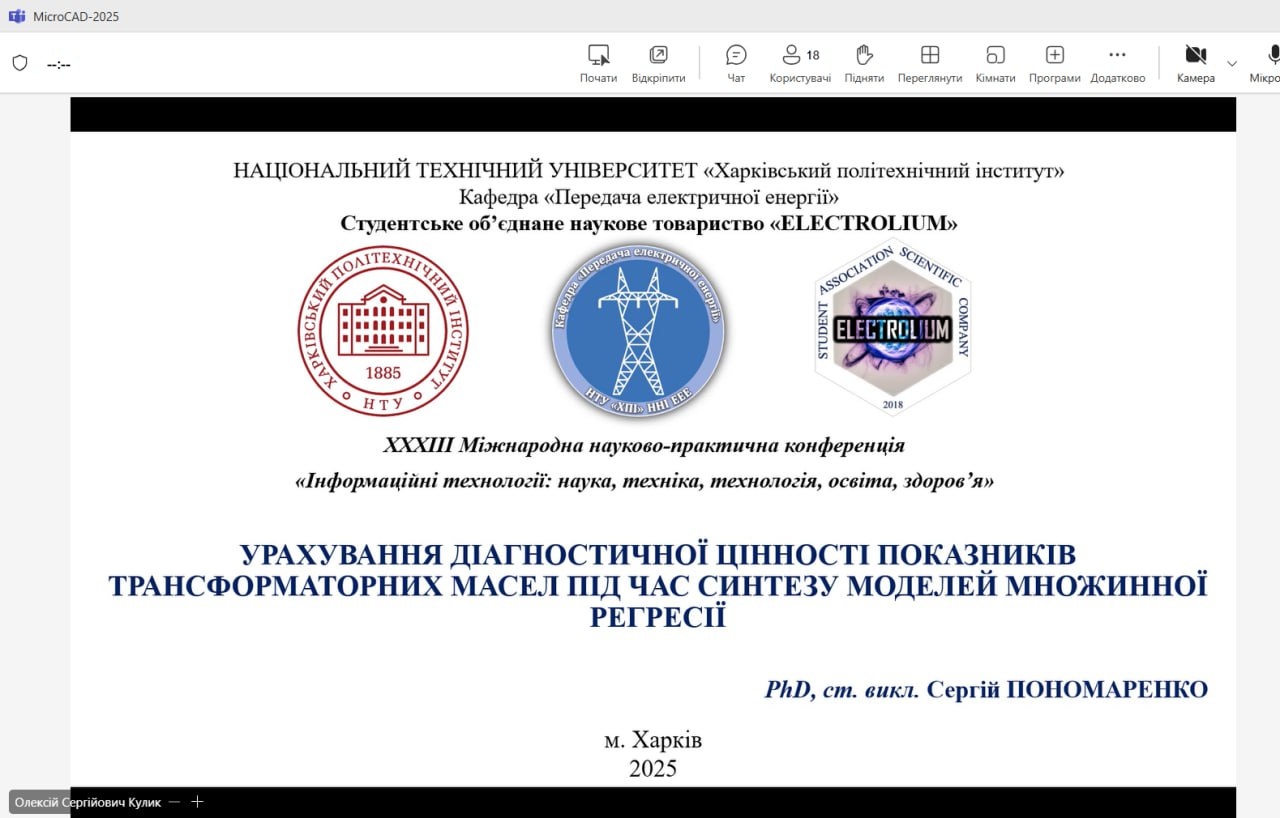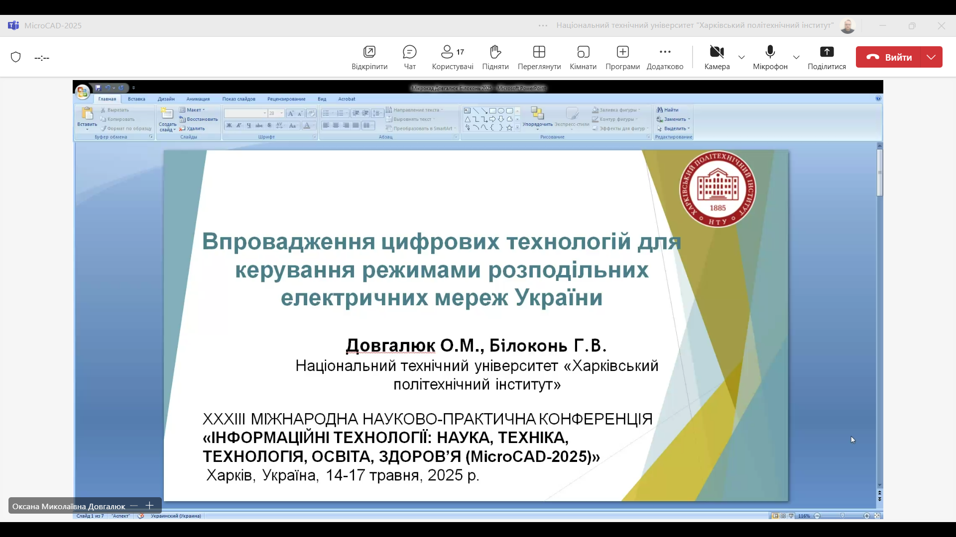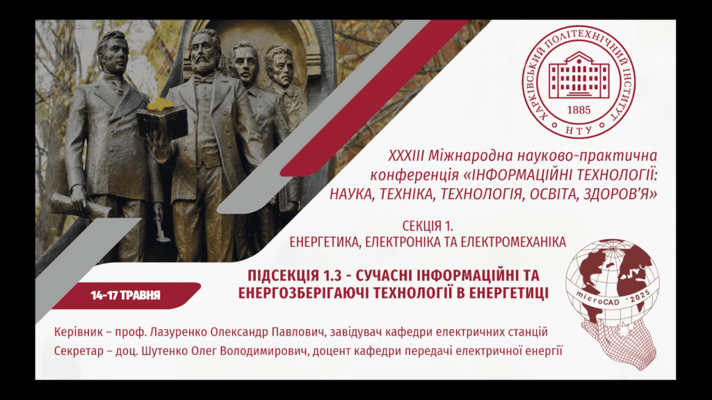 17 травня 2025 року стало особливим днем не лише завдяки XXXIII Міжнародній науково-практичній конференції «Інформаційні технології: наука, техніка, технологія, освіта, здоров’я (MicroCAD-2025)», а й тому, що саме в цей день відзначається День науки в Україні. В рамках конференції відбулося засідання підсекції 1.3 «Сучасні інформаційні та енергозберігаючі технології в енергетиці» секції 1 «Енергетика, електроніка та електромеханіка». Це поєднання наукового свята та високопрофесійного заходу підкреслило важливість інновацій та розвитку технологій у сучасному світі.
