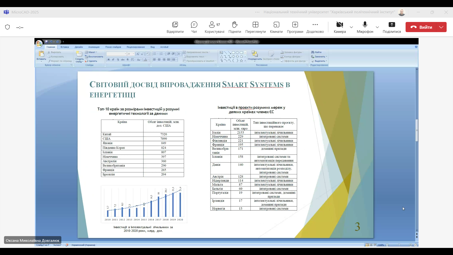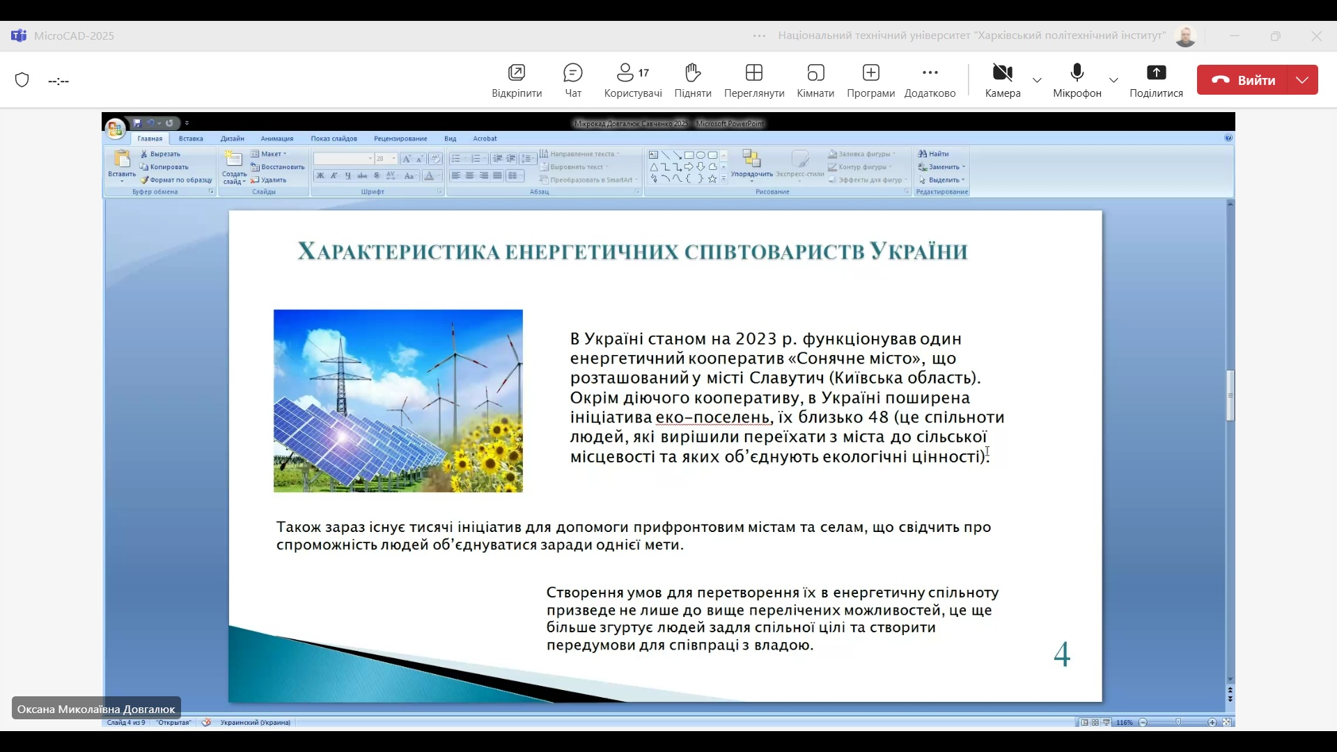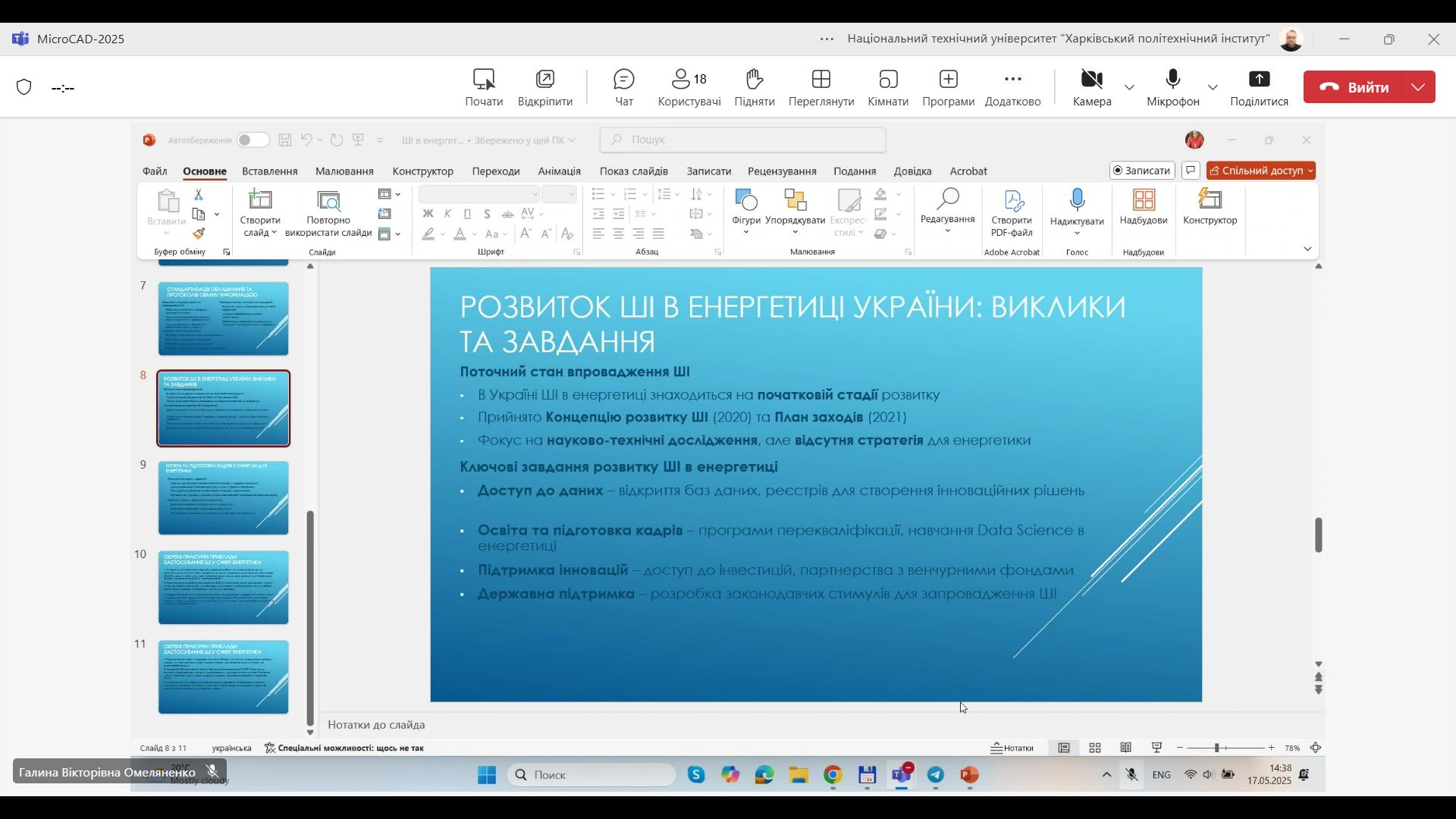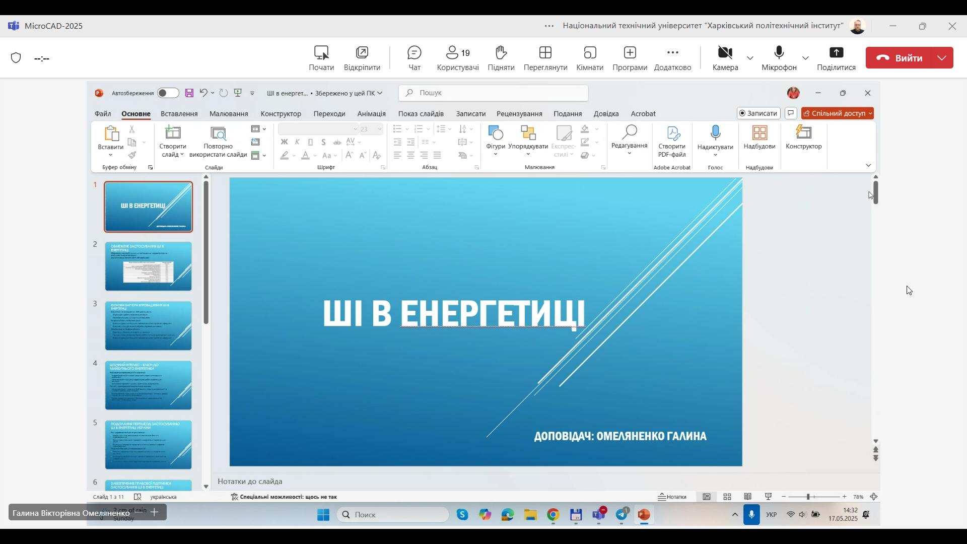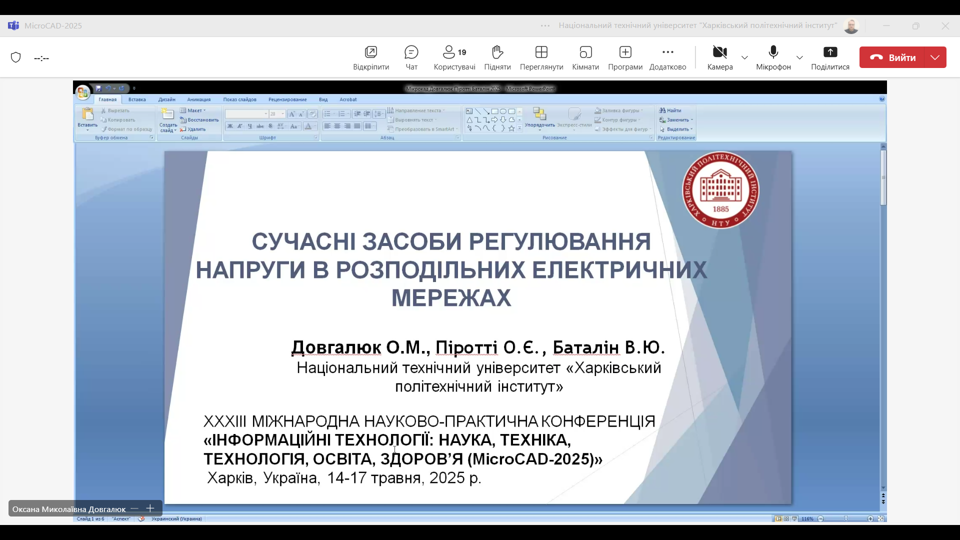 17 травня 2025 року стало особливим днем не лише завдяки XXXIII Міжнародній науково-практичній конференції «Інформаційні технології: наука, техніка, технологія, освіта, здоров’я (MicroCAD-2025)», а й тому, що саме в цей день відзначається День науки в Україні. В рамках конференції відбулося засідання підсекції 1.3 «Сучасні інформаційні та енергозберігаючі технології в енергетиці» секції 1 «Енергетика, електроніка та електромеханіка». Це поєднання наукового свята та високопрофесійного заходу підкреслило важливість інновацій та розвитку технологій у сучасному світі.