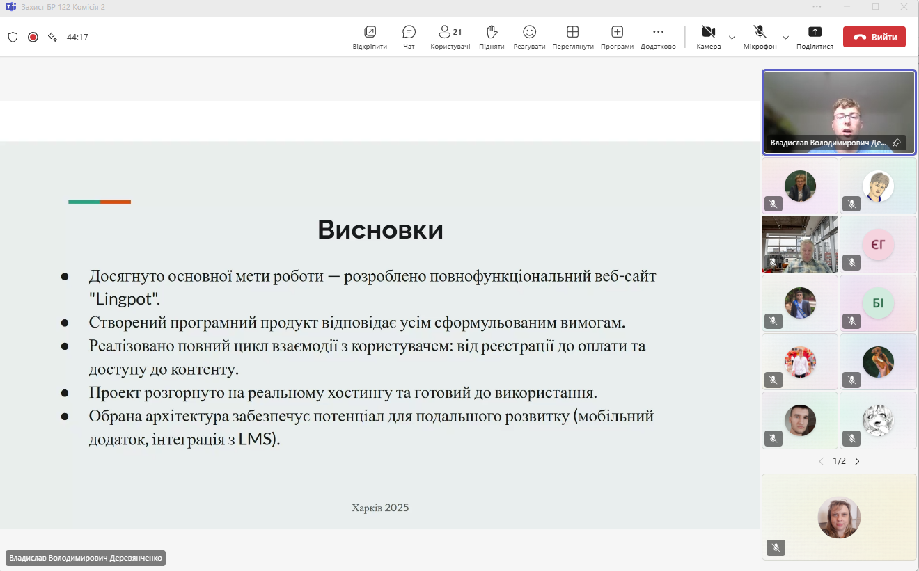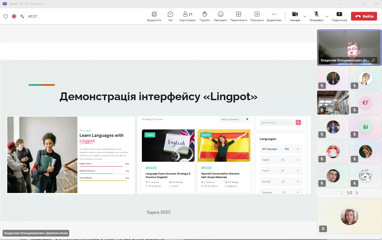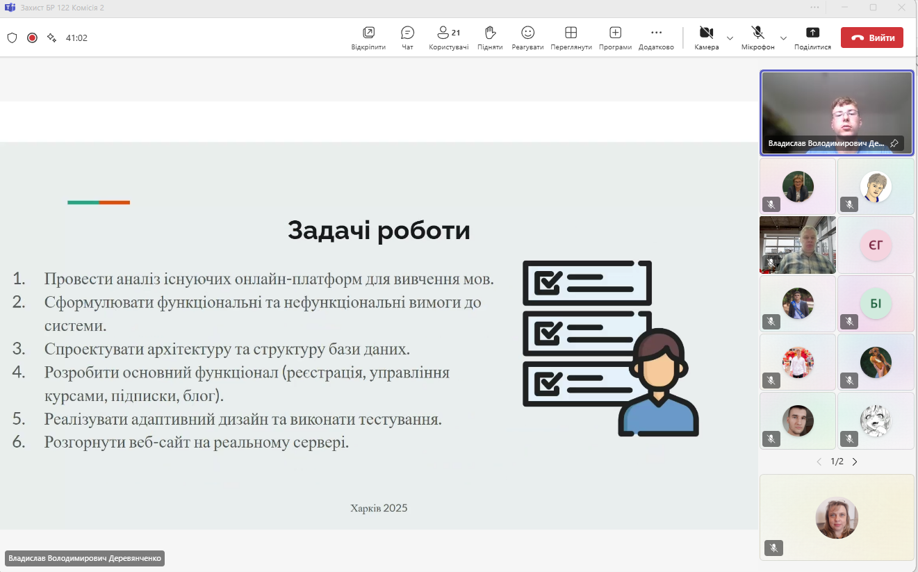 - ДЕРЕВЯНЧЕНКО Владислав Володимирович – Розробка інтерактивного вебдодатку «Мовна школа» для вивчення іноземних мов