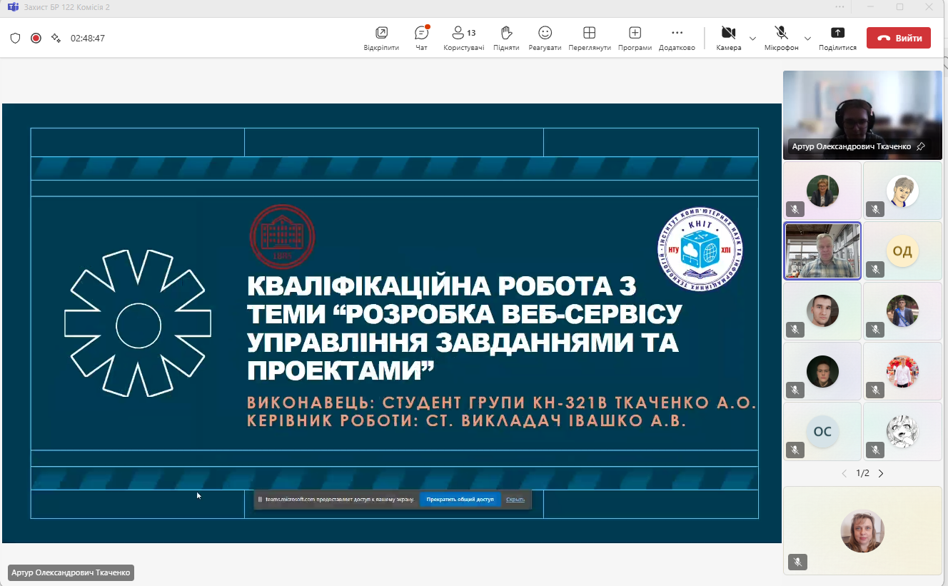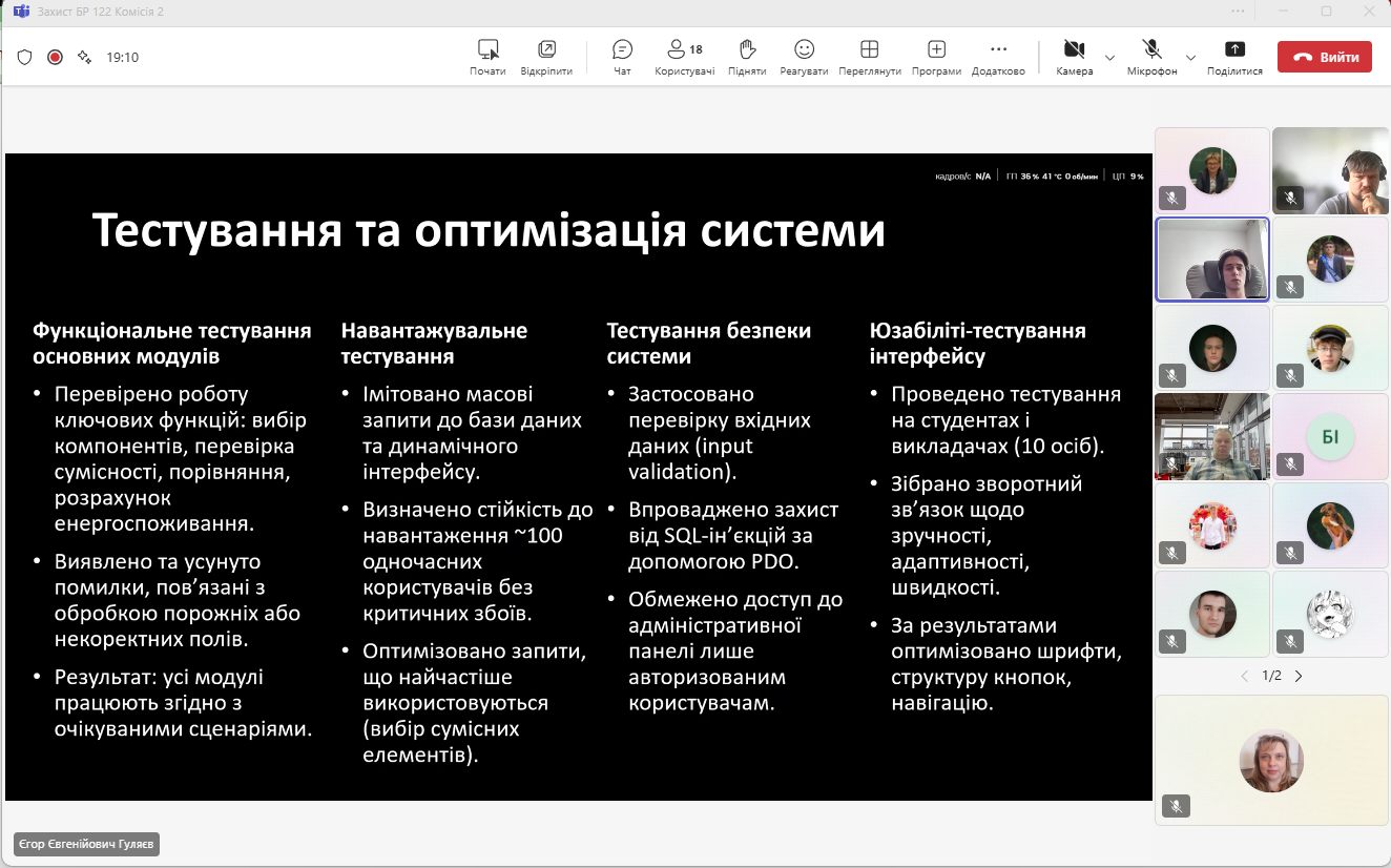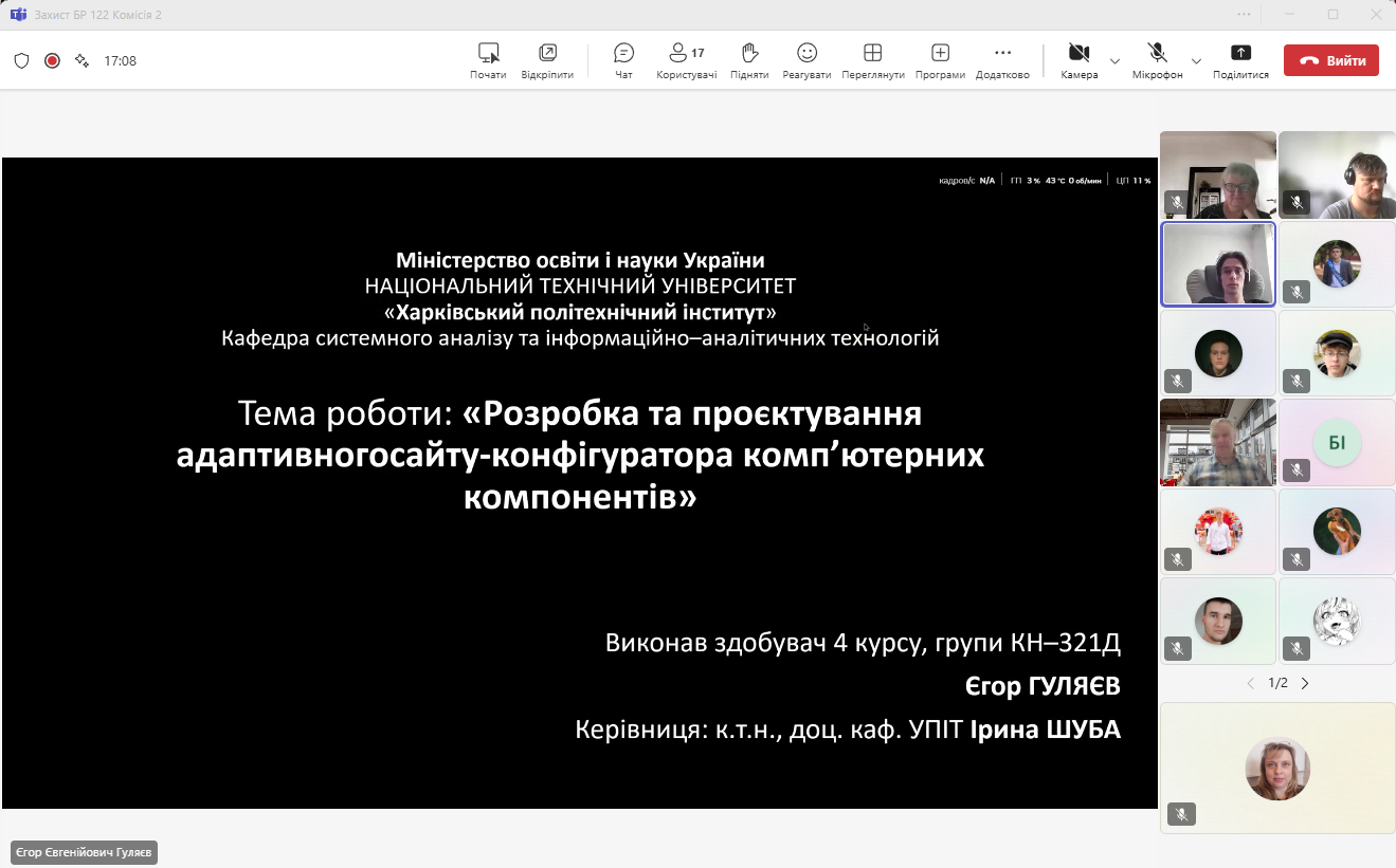 23.06.2025 на кафедрі САІТ за допомогою платформи Microsoft 365 відбувся другий день захисту кваліфікаційних робіт магістрів спеціальностей 122 – Комп’ютерні науки (комісія 2).