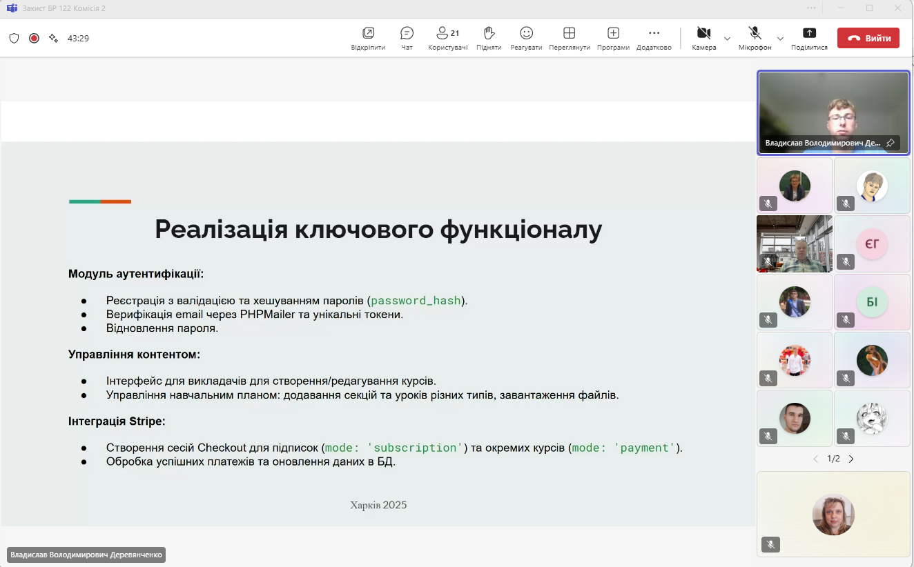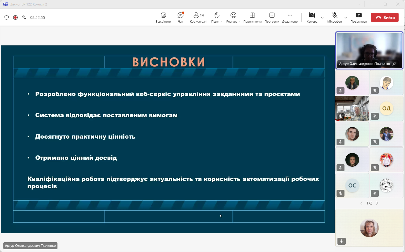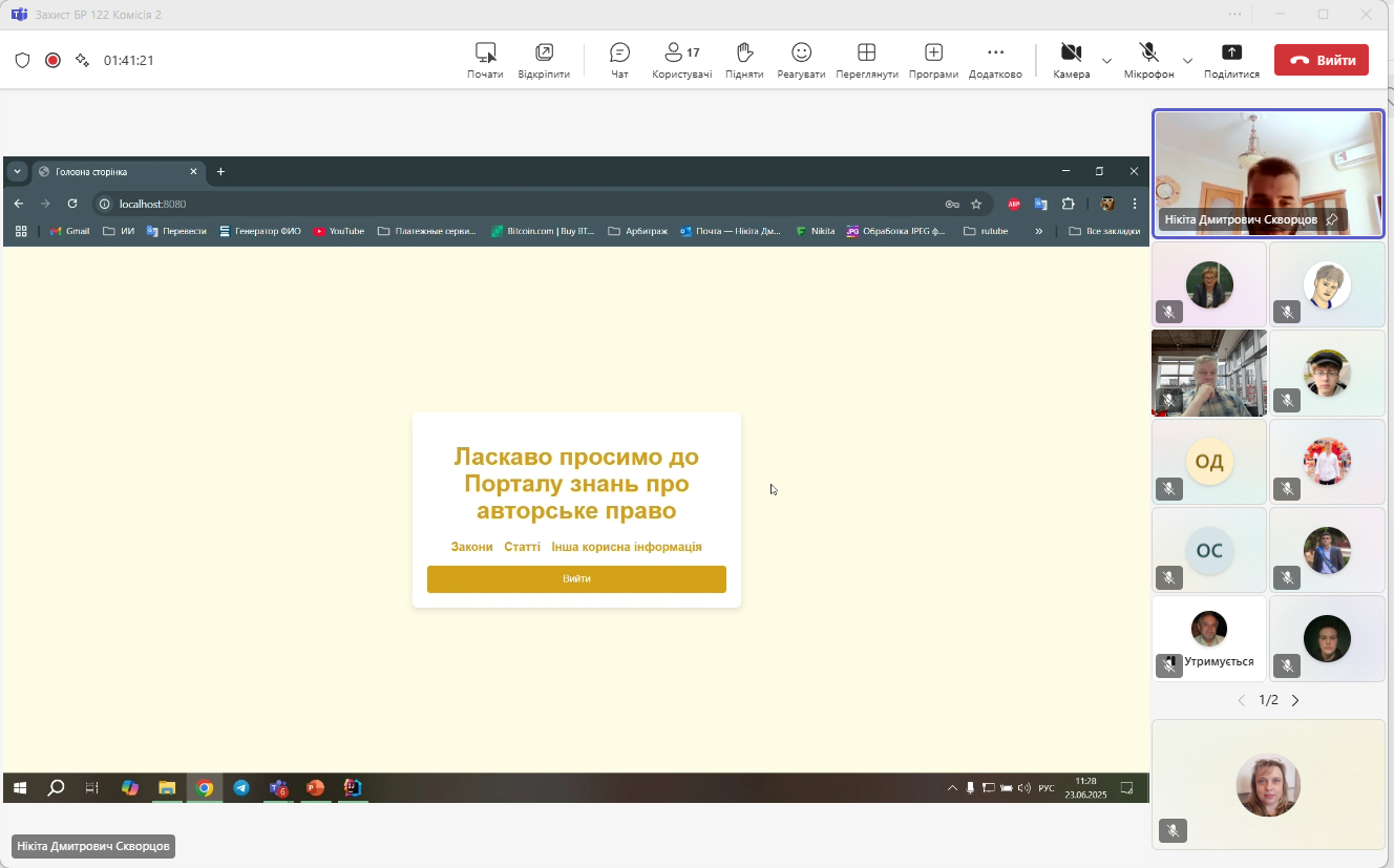 23.06.2025 на кафедрі САІТ за допомогою платформи Microsoft 365 відбувся другий день захисту кваліфікаційних робіт магістрів спеціальностей 122 – Комп’ютерні науки (комісія 2).