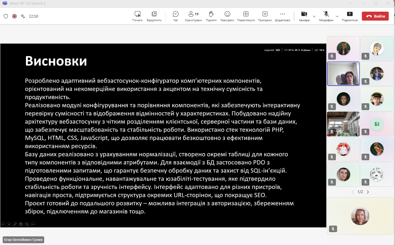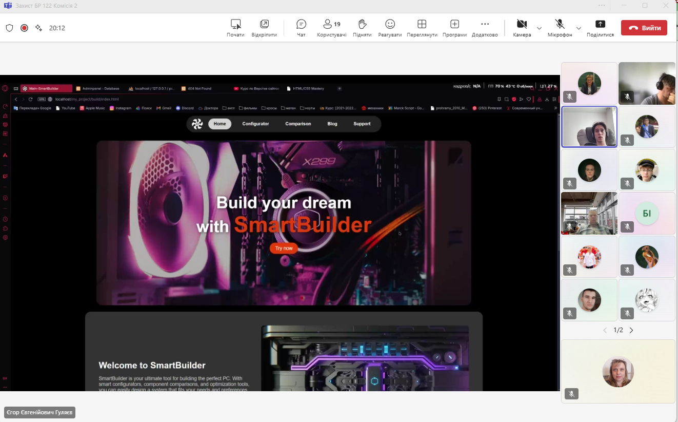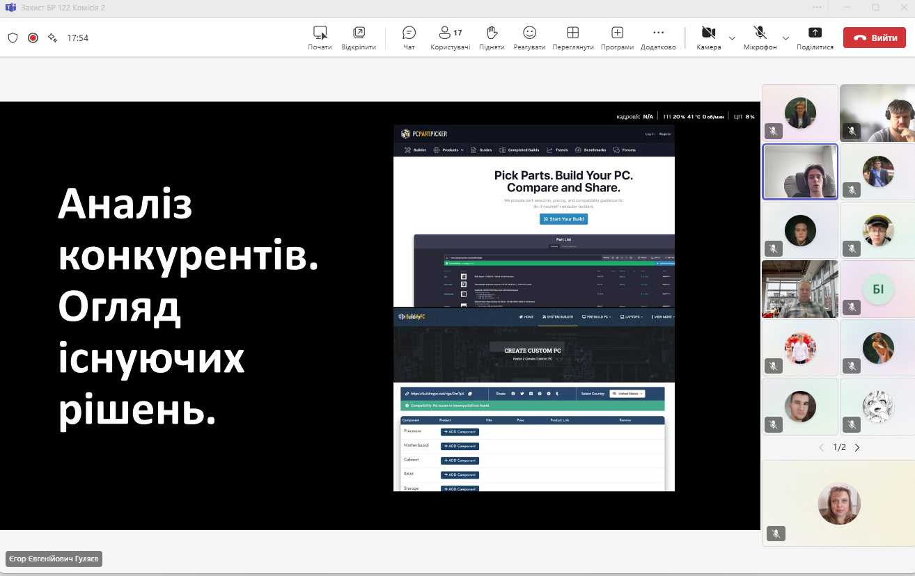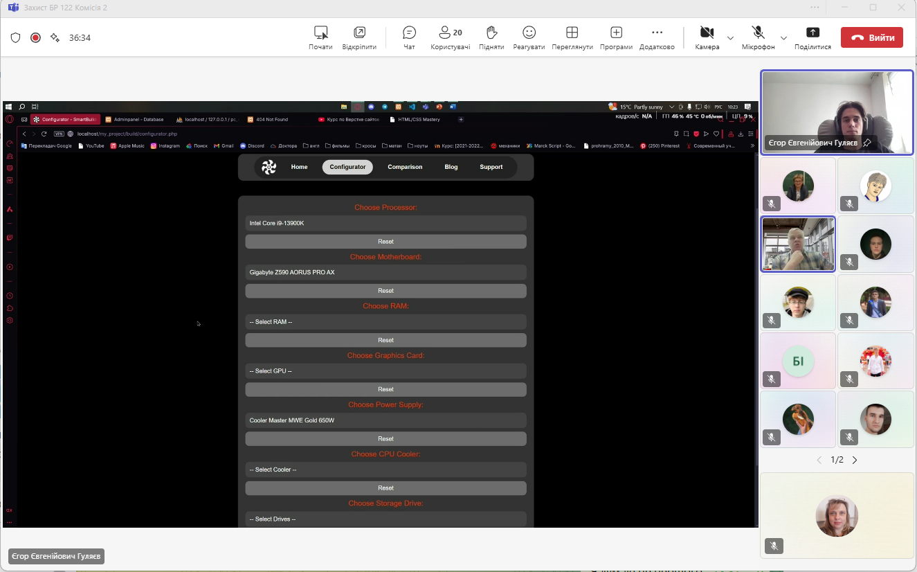 - ГУЛЯЄВ Єгор Євгенійович – Розробка та проєктування адаптивного сайту-конфігуратора комп’ютерних компонентів