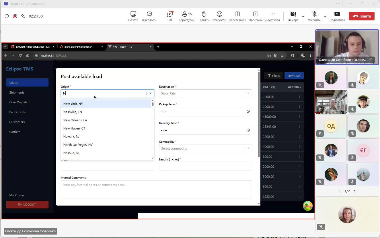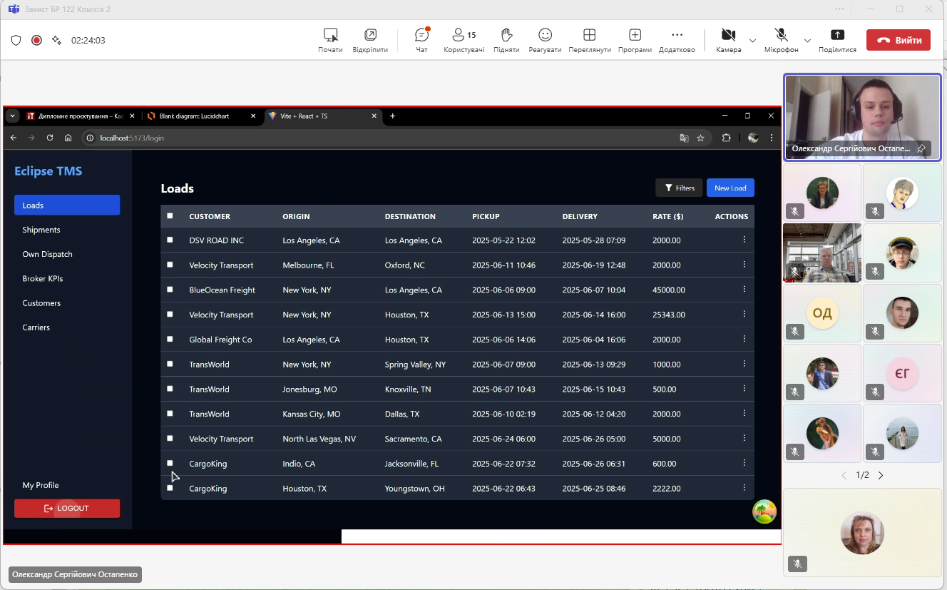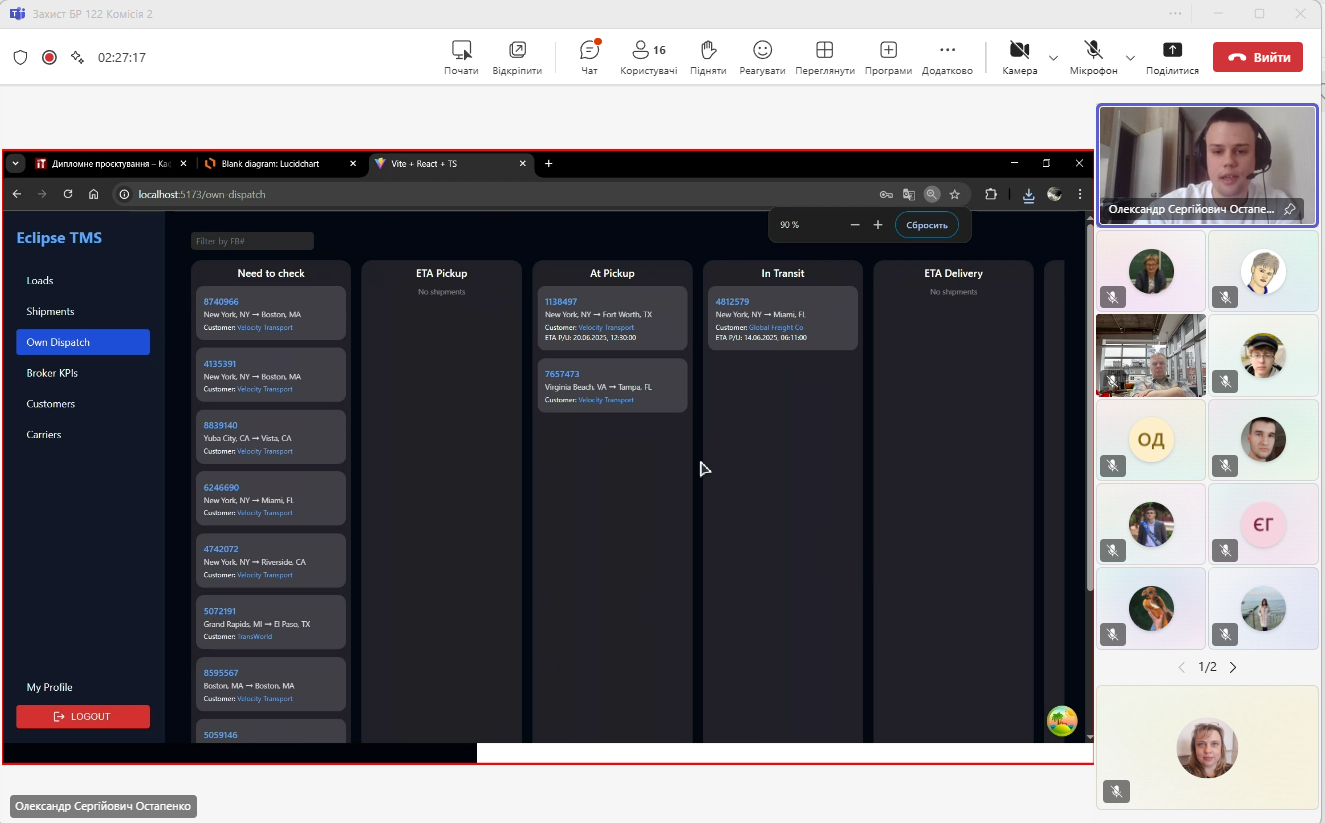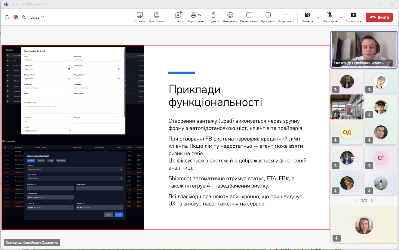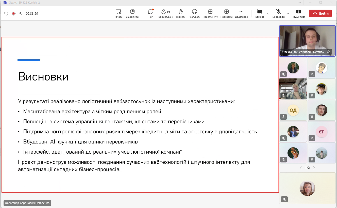 - ОСТАПЕНКО Олександр Сергійович – Розробка вебзастосунку з технологіями штучного інтелекту для логістичної компанії