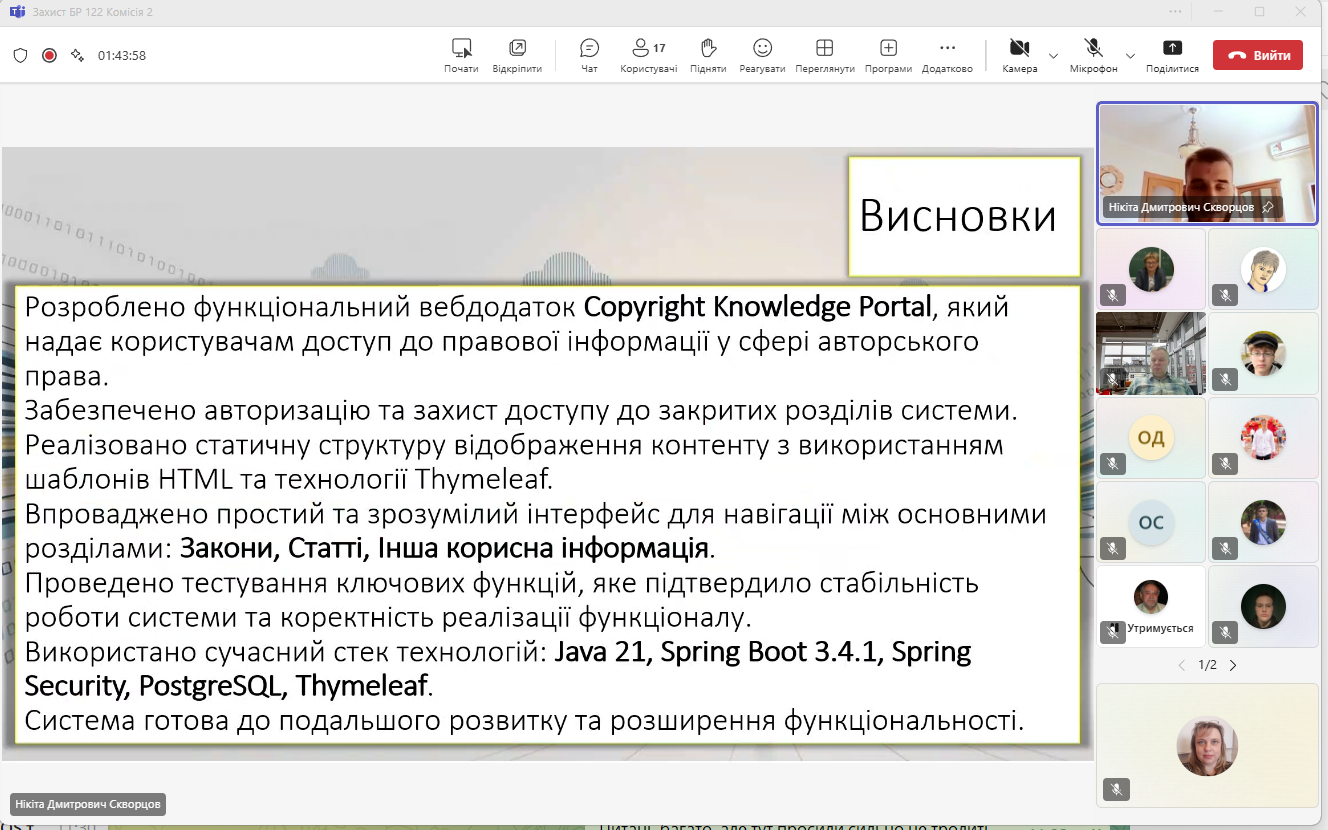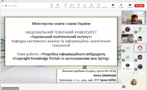 - СКВОРЦОВ Нікіта Дмитрович – Розробка інформаційного вебдодатку «Copyright Knowledge Portal» із застосуванням Java Spring
