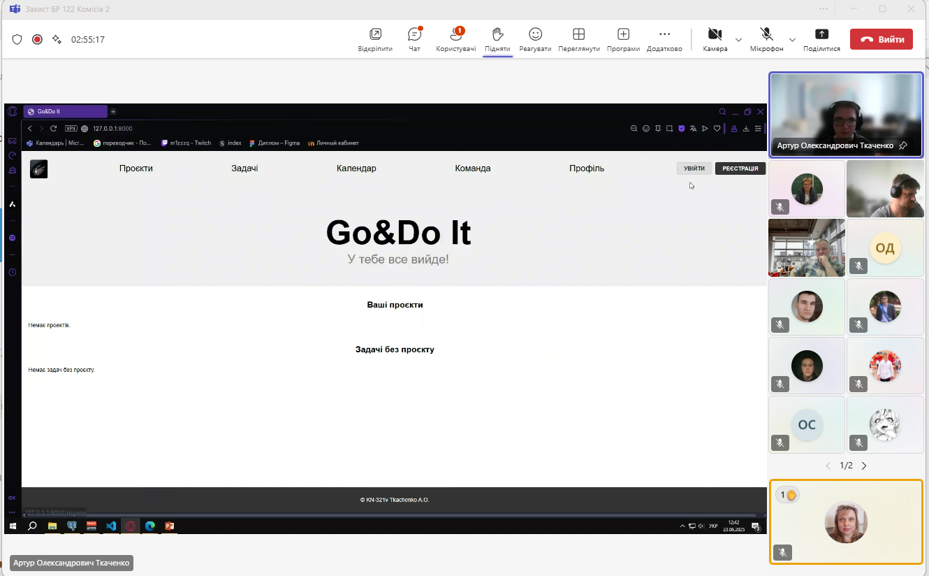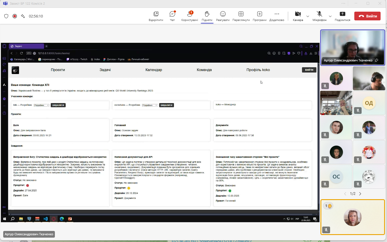 - ТКАЧЕНКО Артур Олександрович – Розробка веб-сервісу управління завданнями та проектами
