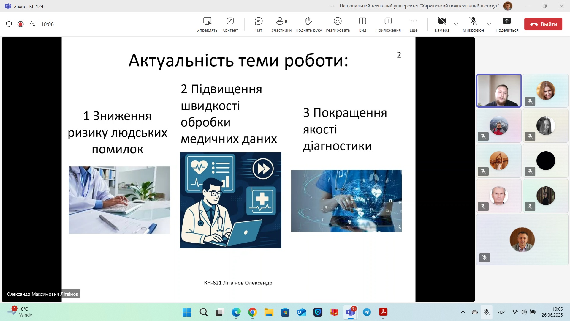 26.06.2025 на кафедрі САІТ за допомогою платформи Microsoft 365 відбувся другий день захисту кваліфікаційних робіт магістрів спеціальностей 124 – Системний аналіз.