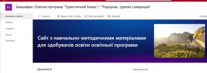 Навчально-методичні комплекси дисциплін для здобувачів першого (бакалаврського) рівня вищої освіти спеціальності «Туризм і рекреація» розміщено на внутрішньому сайті кафедри за посиланням. Посилання доступне для входу при авторизації з адрес корпоративної електроннної пошти НТУ «ХПІ». |