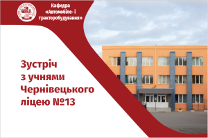 27 січня 2026 року відбулася онлайн-зустріч із учнями випускних класів ліцею № 13 в м. Чернівці, організована спільними зусиллями кафедр Навчально-наукового інституту механічної інженерії та транспорту (ННІ МІТ). У заході взяли активну участь представники кафедр «Автомобіле- і тракторобудування», «Хімічної техніки Читати далі