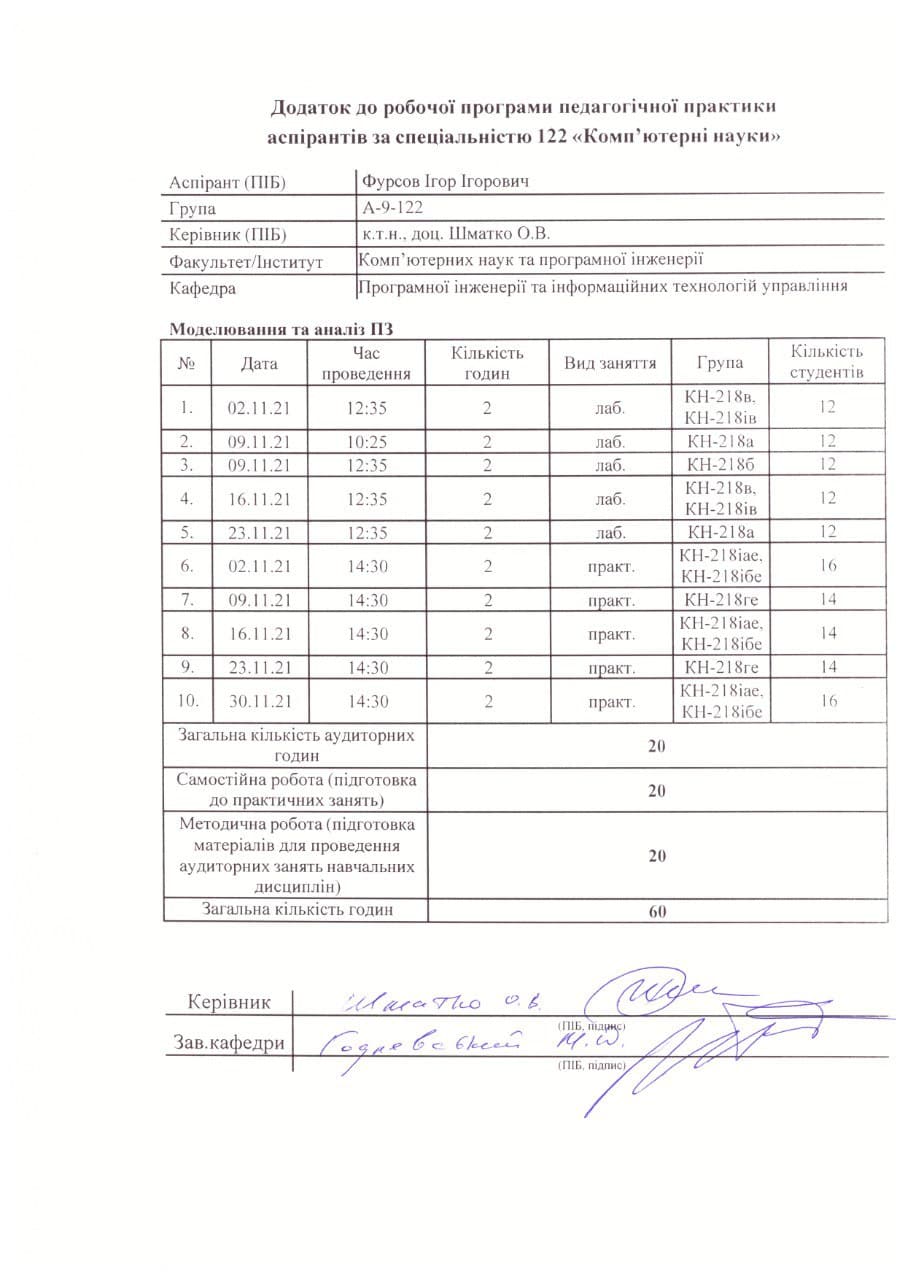Практична підготовка аспірантiв на кафедрi ПIIТУ