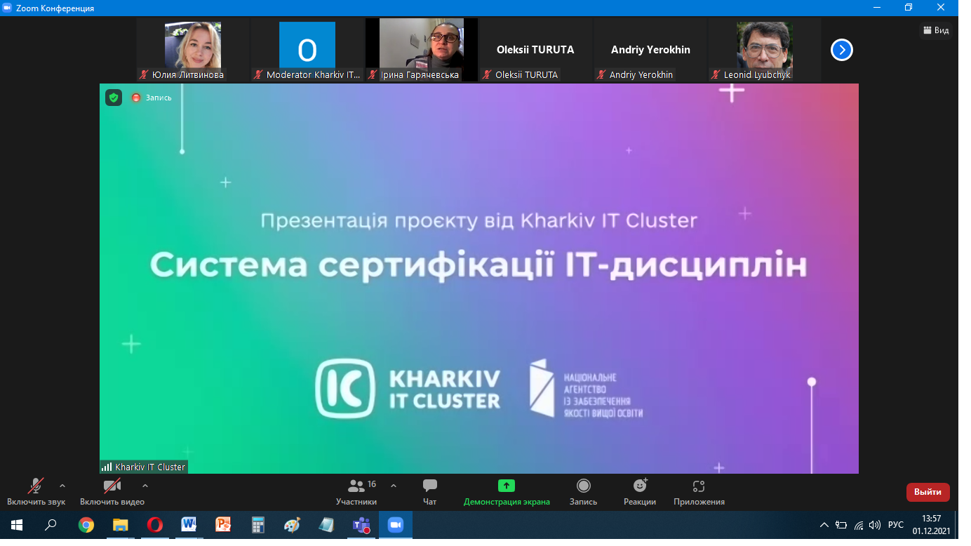 1-го грудня гаранти освітніх програм кафедри ПІІТУ (Михайло Годлевський, Ольга Чередніченко, Олена Нікуліна, Юлія Літвінова) взяли участь у проєкті від Харківського ІТ-кластеру «Сертифікація ІТ-дисциплін».