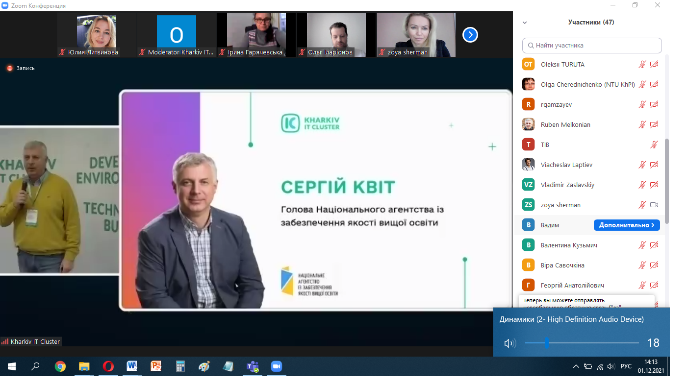 Захід відкрив Сергій Квіт, оскільки Національне агентство із забезпечення якості вищої освіти підтримує цей проєкт. Він акцентував увагу на тому, що сертифікація від Kharkiv IT Cluster буде враховуватись при акредитації освітніх програм, а сертифікати будуть розміщені на сайті Агентства.