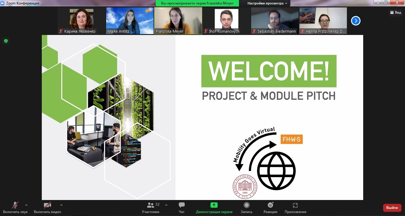 This international inter-campus elective module brought together students of Kharkiv Polytechnic and the University of Applied Sciences Würzburg-Schweinfurt (FHWS, Germany) in an online classroom. The partnership program provides training using online tools and platforms and subsequent visits of Ukrainian students to the German Economic Area.