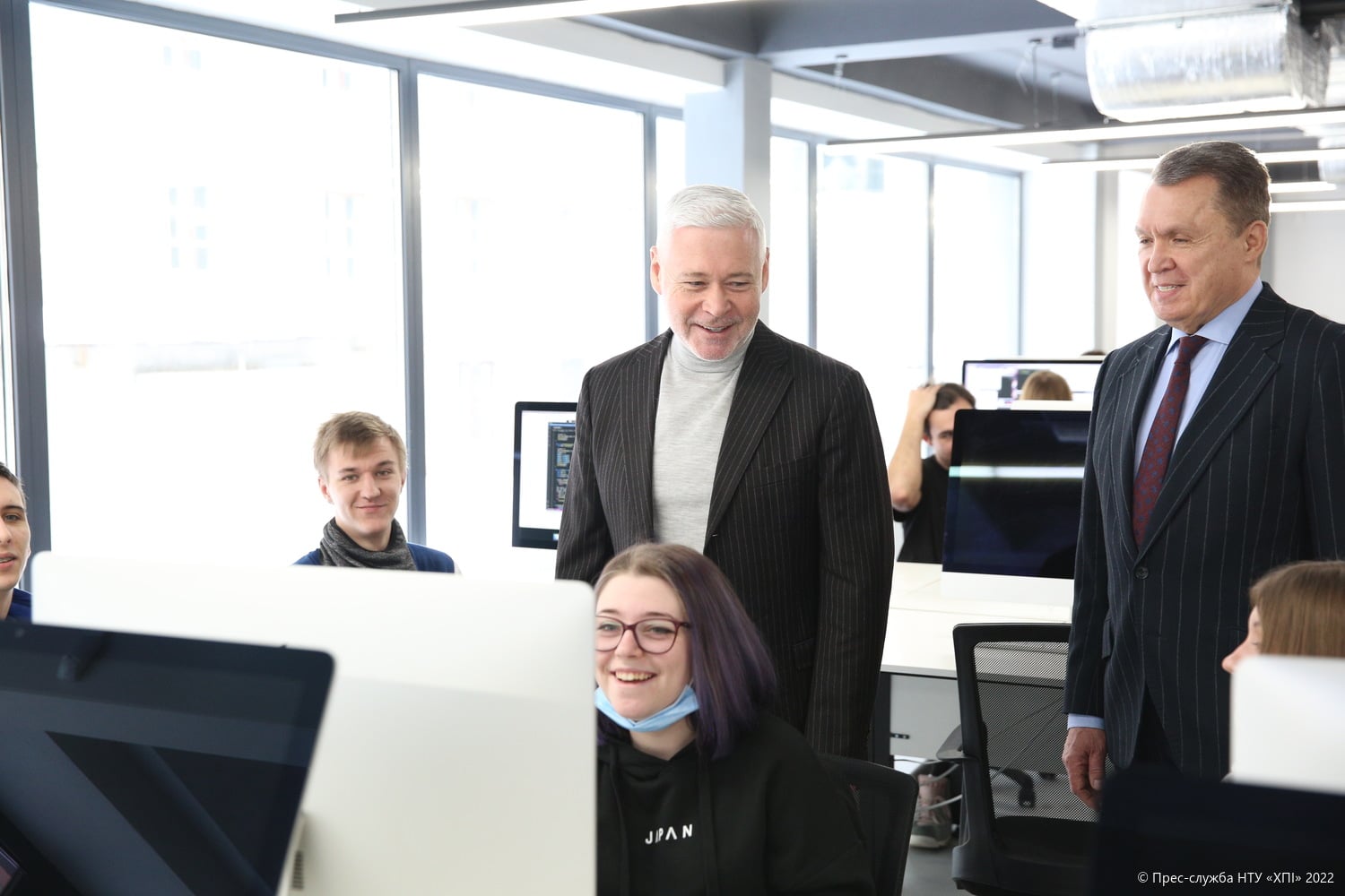 Ректор НТУ «ХПІ» Євген Сокол провів невелику екскурсію новою будівлею Інноваційного кампуса і наголосив на тому, що це втілення об’єднання потенціалу ХПІ, держави та бізнесу». Говорячи про освітні програми, які будуть реалізовуватися в кампусі і я в яких будуть брати участь студенти кафедри ПІІТУ, ректор зробив акцент на тому, що в них «зібрано найсучасніші технології: підхід peer-to-peer learning, тобто співпраця на рівних, гейміфікація, проєктне навчання».