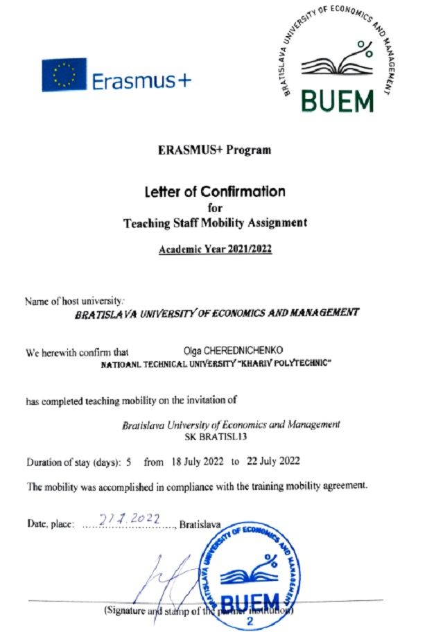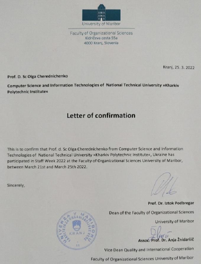 This confirms the high level of professionalism our lecturers and testifies to the permanent international relations of the Software Engineering and Management Intelligent Technologies Department with partner universities!