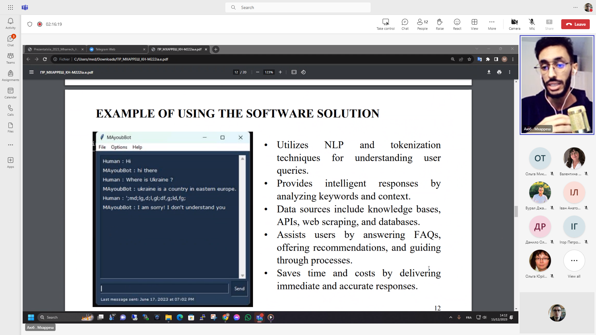 – Development and research of natural language processing software components for building an intelligent chatbot;