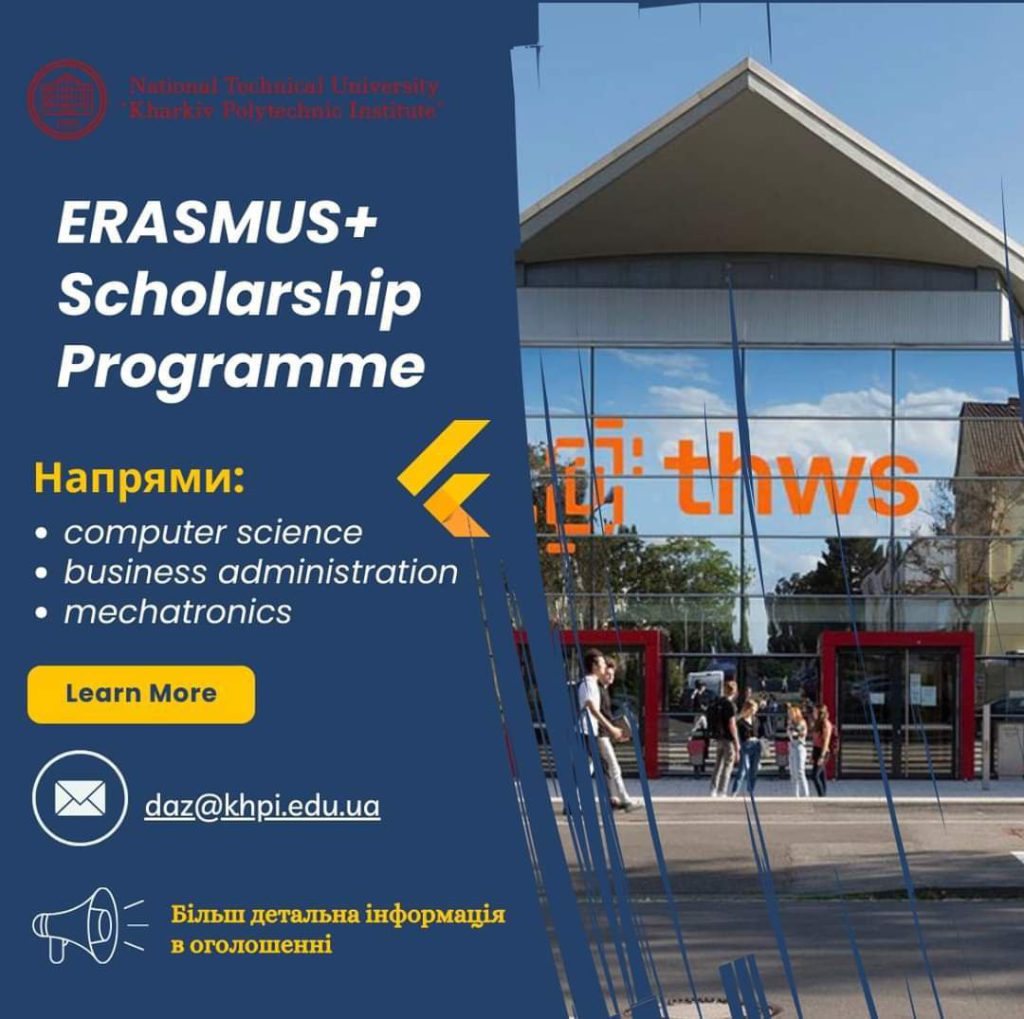 Розпочато конкурс на отримання стипендії у рамках програми академічної мобільності #Erasmus+ на зимовий семестр 2024/25 н.р. та навчання в Технічному університеті прикладних наук Вюрцбург-Швайнфурт.