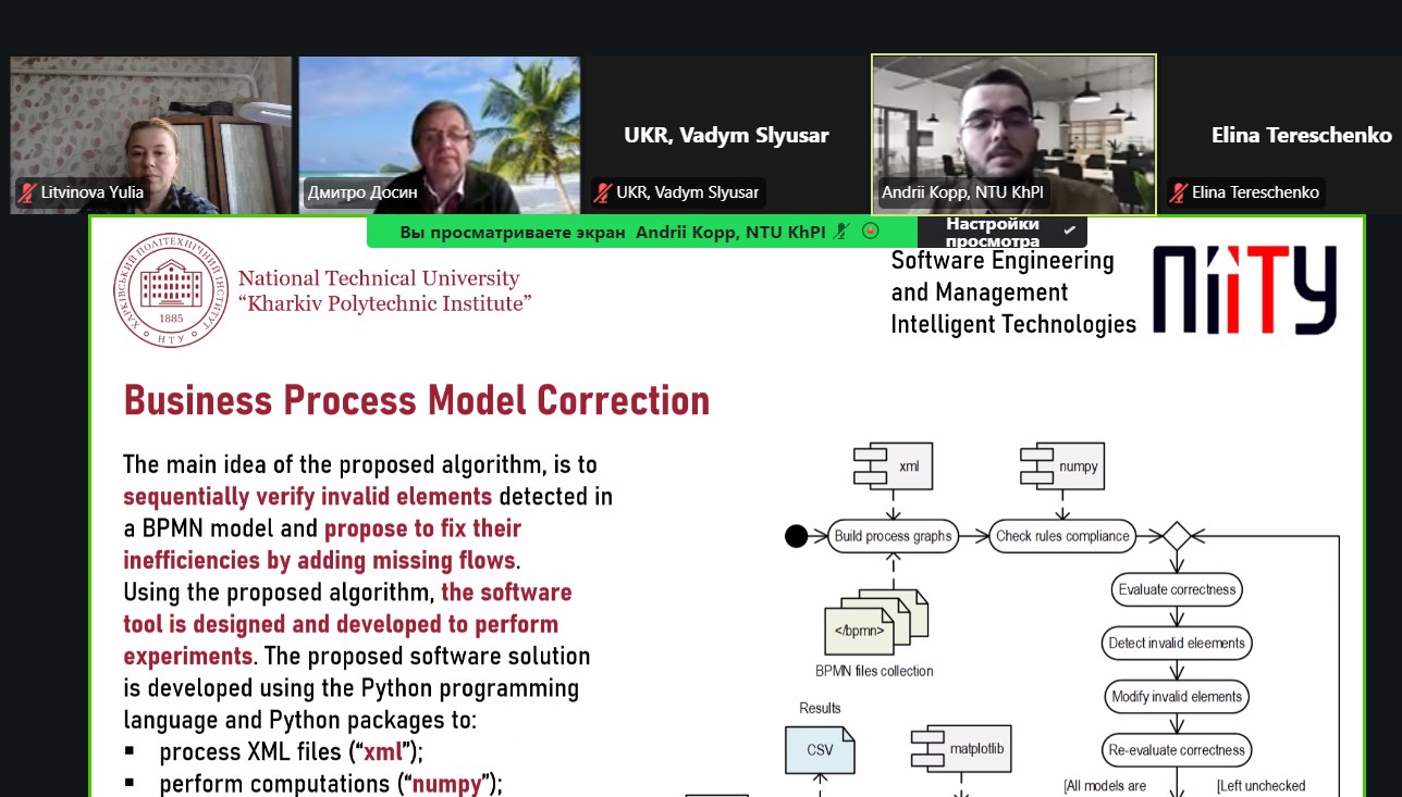 👨💻The work presented by the staff of the SEMIT Department of NTU “KhPI” aims to make a contribution to the field of Business Process Management by offering algorithms and software to improve the correctness of business process models based on their structural analysis. This will improve the quality of BPMN business process models, reduce the likelihood of errors and the corresponding cost, time, or even more serious consequences for critical processes.