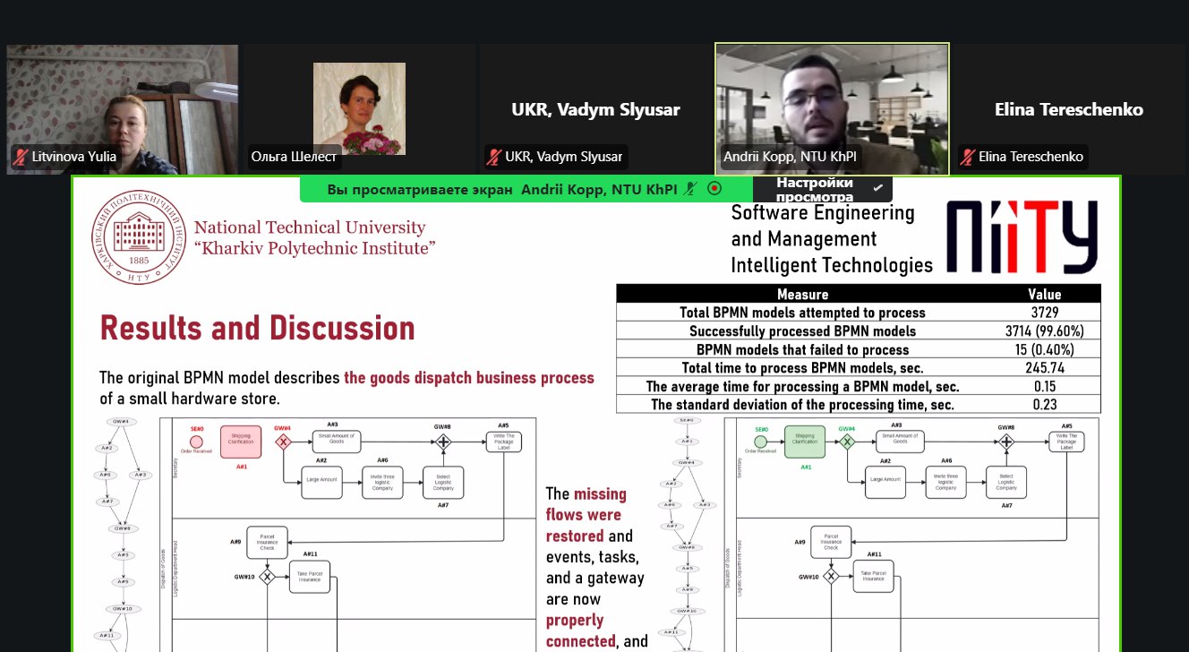 😌Науково-педагогічні працівники кафедри ПІІТУ, НТУ “ХПІ” взяли участь в міжнародному воркшопі Modern Machine Learning Technology & Data Science (MoMLeT&DS), де завідувач кафедри Андрій Копп представив роботу на тему “Towards Algorithmic and Software Solution for Business Process Model Analysis and Correction”, виконану разом з колегами – професором Дмитром Орловським, доцентами Юлією Літвіновою та Ольгою Янголенко.