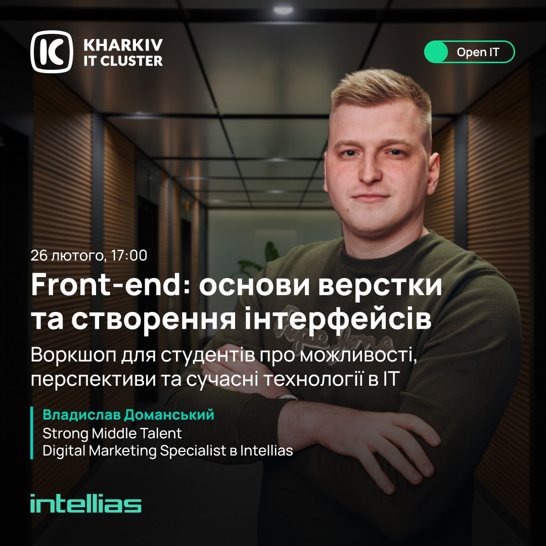 🎤 Speaker: Vladyslav Domanskyi Strong Middle Talent Digital Marketing Specialist в Intellias, who specializes in layout and interface development.