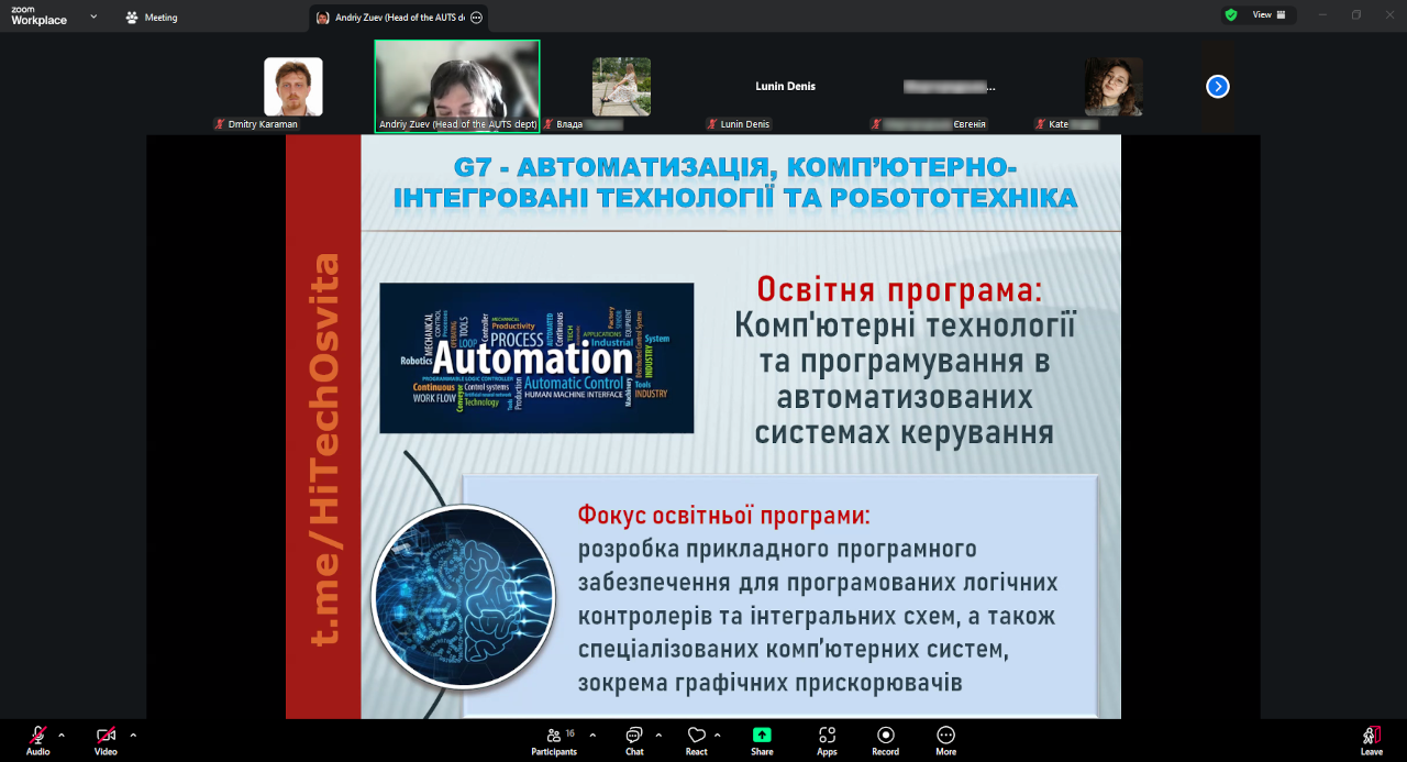 Окрему увагу було приділено спеціальності G7 – «Автоматизація, комп’ютерно-інтегровані технології та робототехніка». Майбутнім абітурієнтам презентували освітні можливості, сучасну матеріально-технічну базу, напрями підготовки та перспективи працевлаштування випускників. Також було представлено міждисциплінарну освітню програму «Інтелектуальні кіберфізичні та робототехнічні системи», яка поєднує сучасні ІТ-технології, автоматизацію та робототехніку.