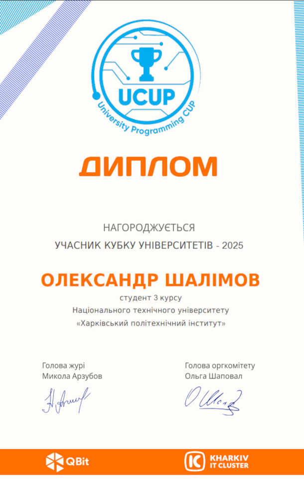 Із 22 лютого по 29 березня 2025 року відбулася одна з наймасштабніших подій серед змагань з програмування в Україні — 🏆 «Кубок університетів з програмування 2025» (UCUP-2025).