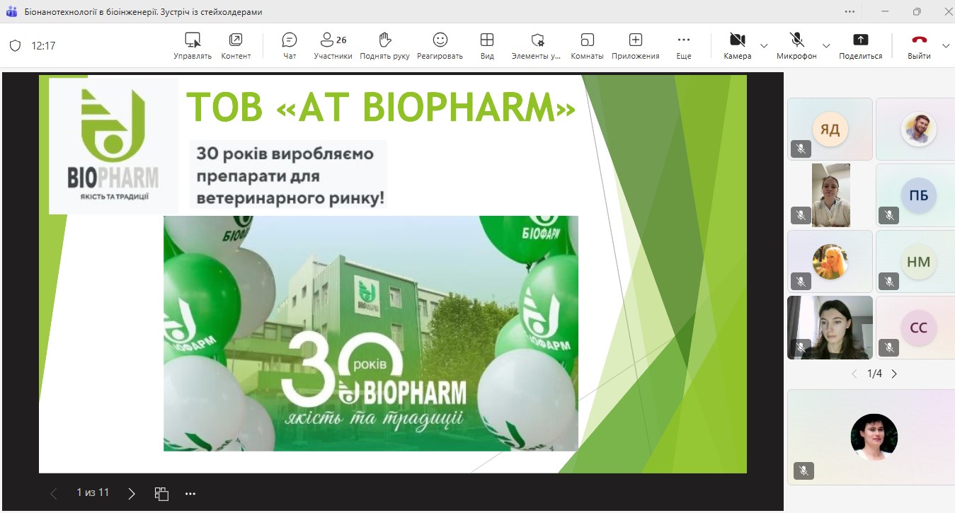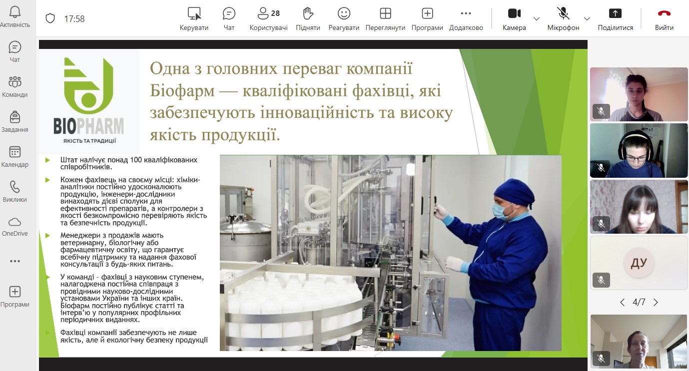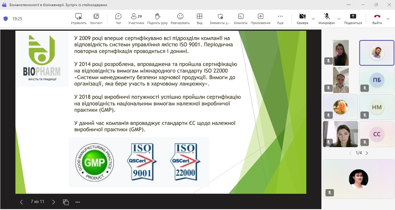 Онлайн-нарада з представниками ТОВ “Фармацевтична компанія “Здоров’я” щодо стажування бакалаврів та магістрів ОП “Біотехнології та біоінженерія”