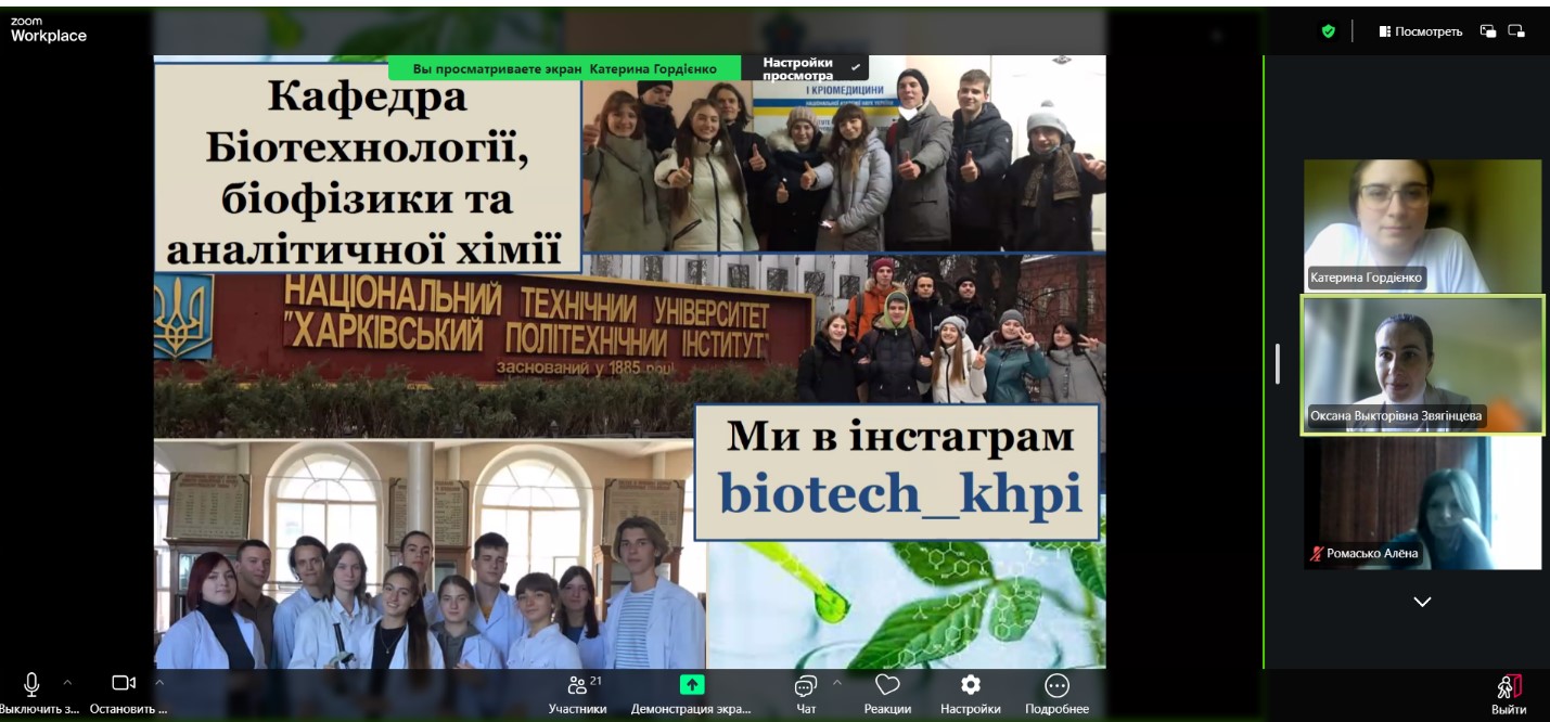 Кафедра біотехнології, біофізики та аналітичної хімії продовжує активну профорієнтаційну роботу зі школами та ліцеями. У межах цієї діяльності було проведено онлайн-зустріч з учнями Комунального закладу «Харківський ліцей № 90», присвячену темі «Знайомство з продуктами бродіння».