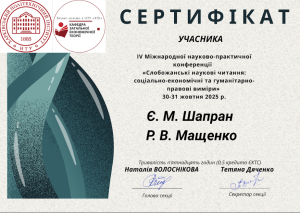 30-31 жовтня 2025 року викладачі та студенти кафедри підприємництва, торгівлі і логістики НТУ “ХПІ” прийняли участь у IV Міжнародній науково-практичній конференції «Слобожанські наукові читання: соціально-економічні та гуманітарно-правові виміри», яка була організована кафедрою загальної економічної теорії НТУ “ХПІ”.