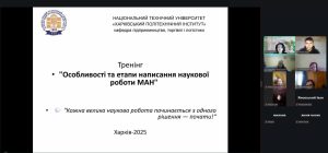 Тренінг для учнів Харківської гімназії №125 на тему: «Особливості та етапи написання наукової роботи МАН»