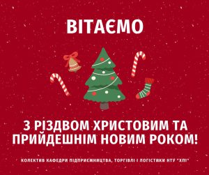 Колектив кафедри підприємництва, торгівлі і логістики щиро вітає Вас з прийдешнім Новим роком!