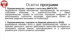 У своїх виступах учасники заходу наголосили на актуальності та практичній спрямованості представлених освітніх програм, а також на їх відповідності сучасним вимогам підготовки фахівців у сфері підприємництва, торгівлі та логістики.
