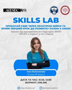 Запрошуємо на Тренінг від ВМГО “АЙСЕК в Україні” на тему: “SKILLS LAB. Прокачай себе через практичні кейси та зроби перший крок до розвитку разом із AIESEC”