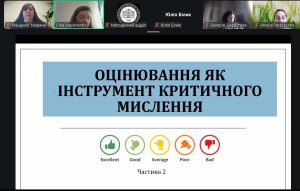 - проф. Марина Мащенко, доц. Ольга Гапоненко провели інтерактивну лекцію «Оцінювання як інструмент розвитку критичного мислення», присвячену ролі формувального оцінювання у формуванні аналітичних компетентностей студентів та підвищенні ефективності освітнього процесу;