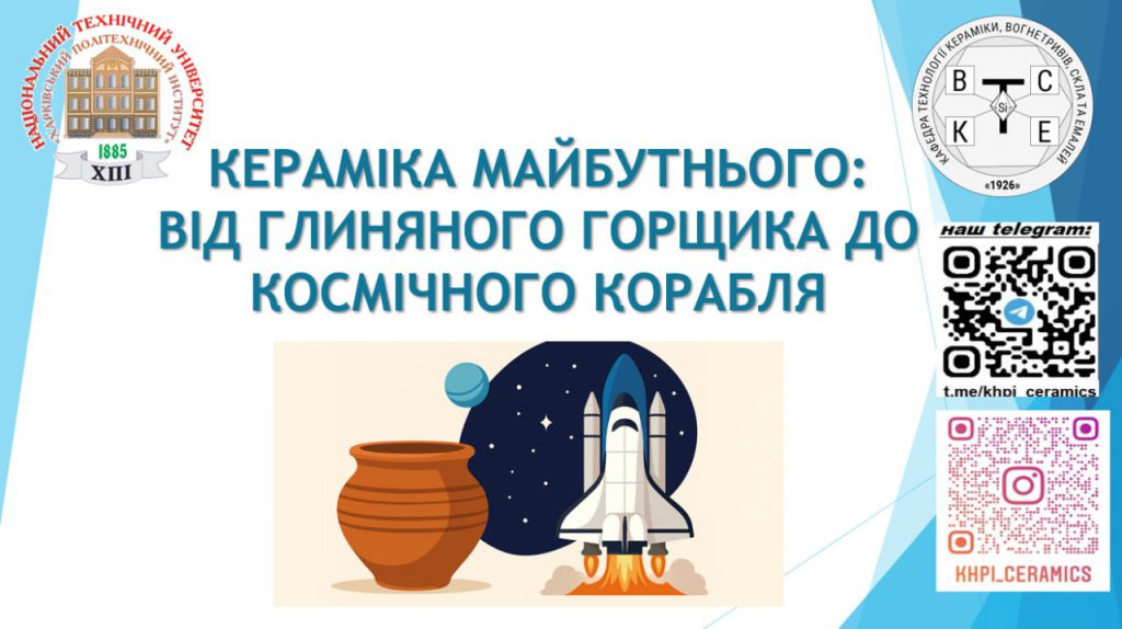 31 жовтня 2025 року професорка кафедри технології кераміки, вогнетривів, скла та емалей НТУ «ХПІ», Борисенко Оксана Миколаївна, провела онлайн науково-популярну лекцію на тему «Кераміка майбутнього: від глиняного горщика до космічного корабля».