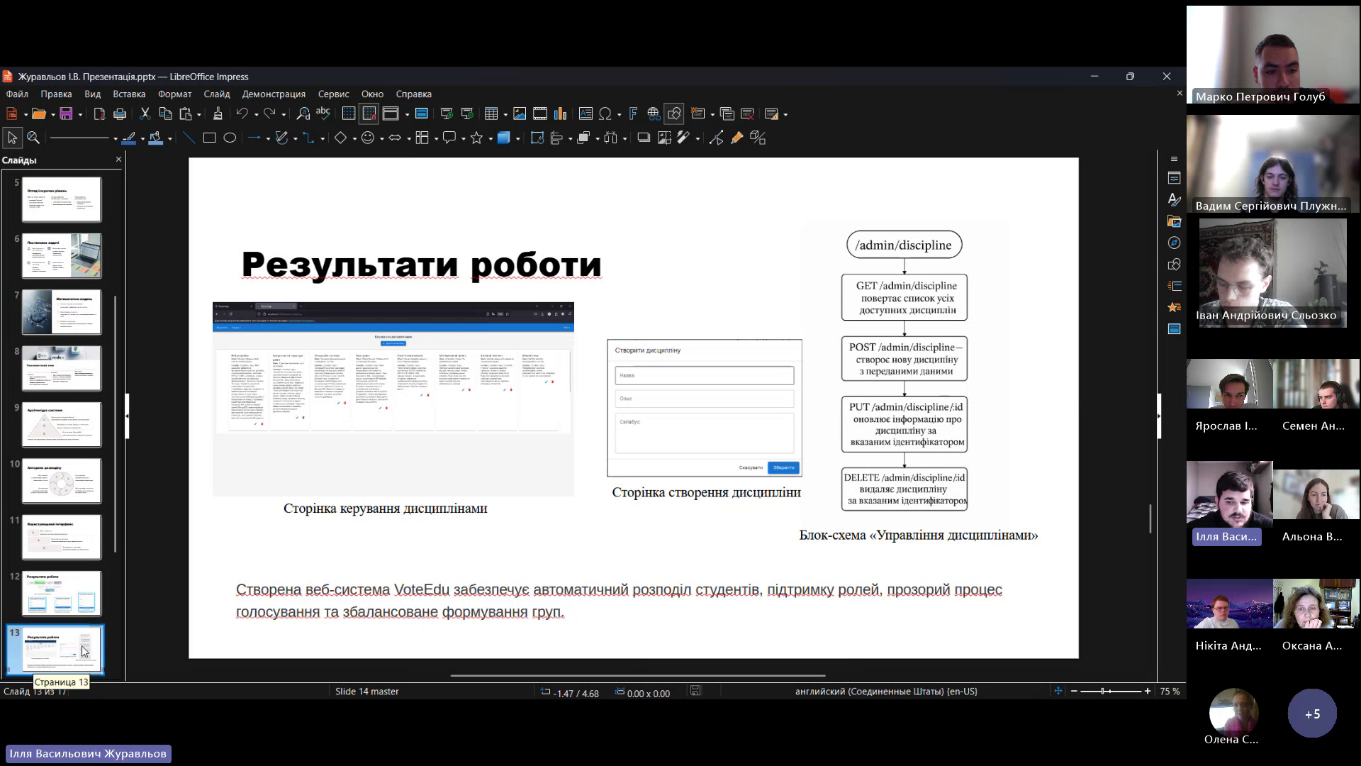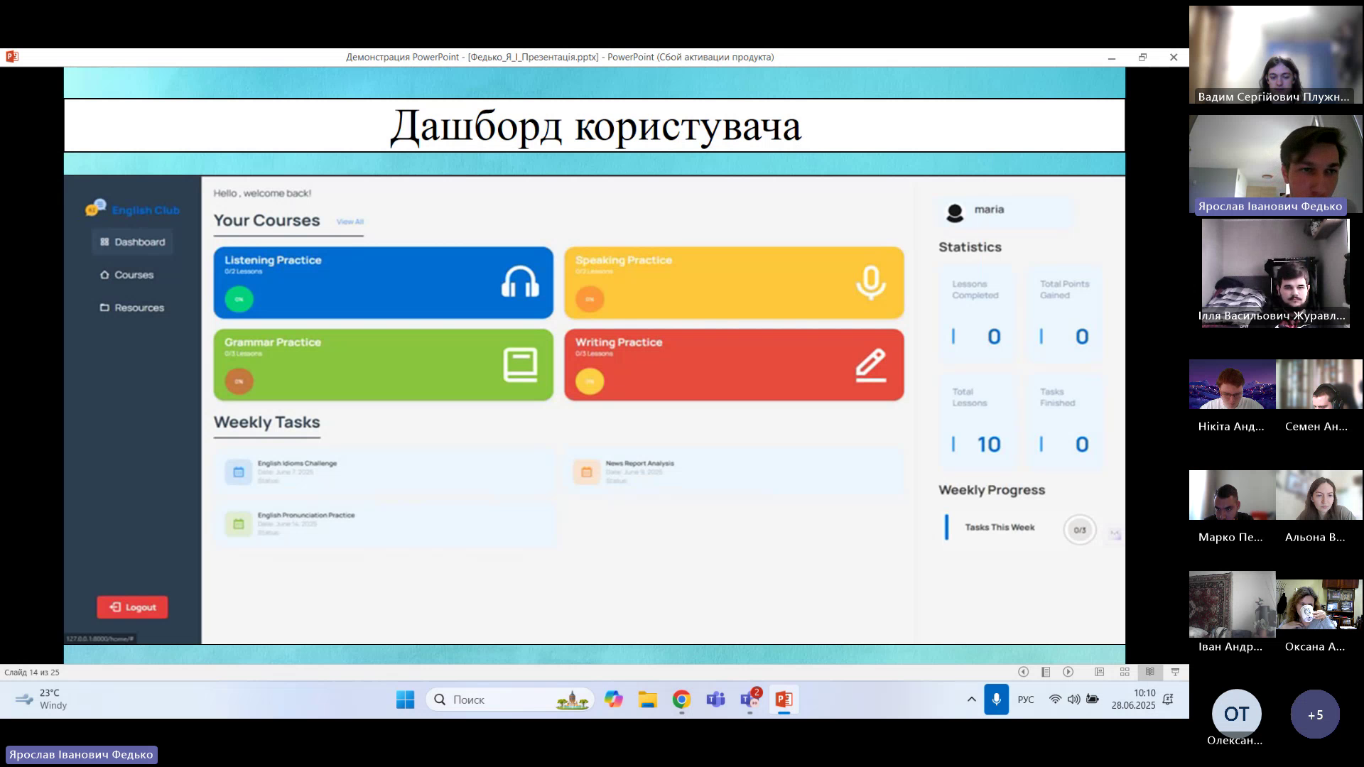 На кафедрі комп’ютерного моделювання процесів та систем відбувся завершальний, шостий день захистів кваліфікаційних робіт бакалаврів. Усі здобувачі освіти успішно пройшли цей важливий етап, продемонструвавши не лише високий рівень професійної підготовки, а й вміння аргументовано презентувати свої ідеї, приймати зауваження і впевнено відповідати на запитання екзаменаційної комісії.