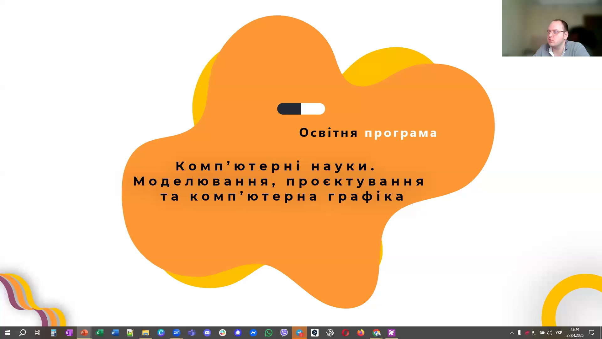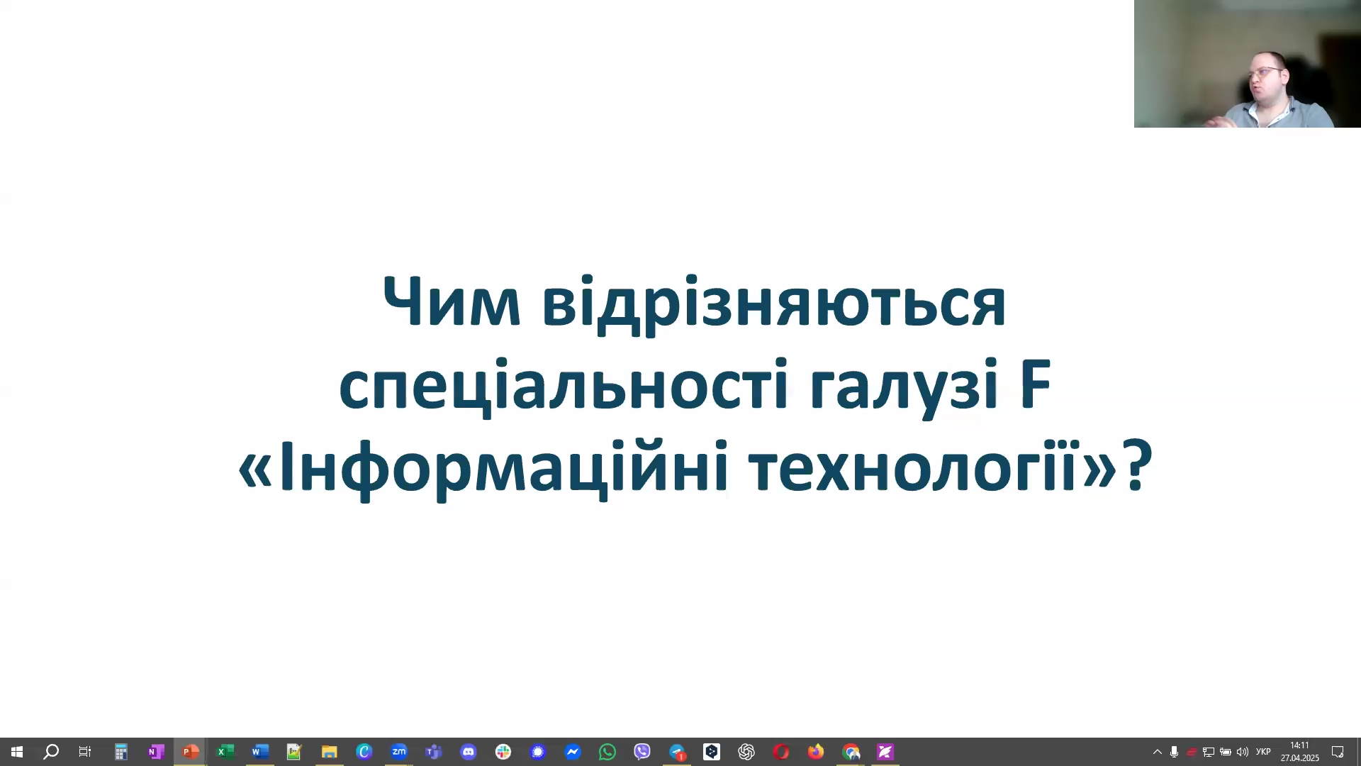 Учасників зустрів доцент кафедри КМПС Володимир Мєтєльов. В інтерактивному форматі школярі дізналися: які спеціальності охоплює галузь F «Інформаційні технології», чим відрізняються комп’ютерні науки від інженерії програмного забезпечення чи кібербезпеки.
