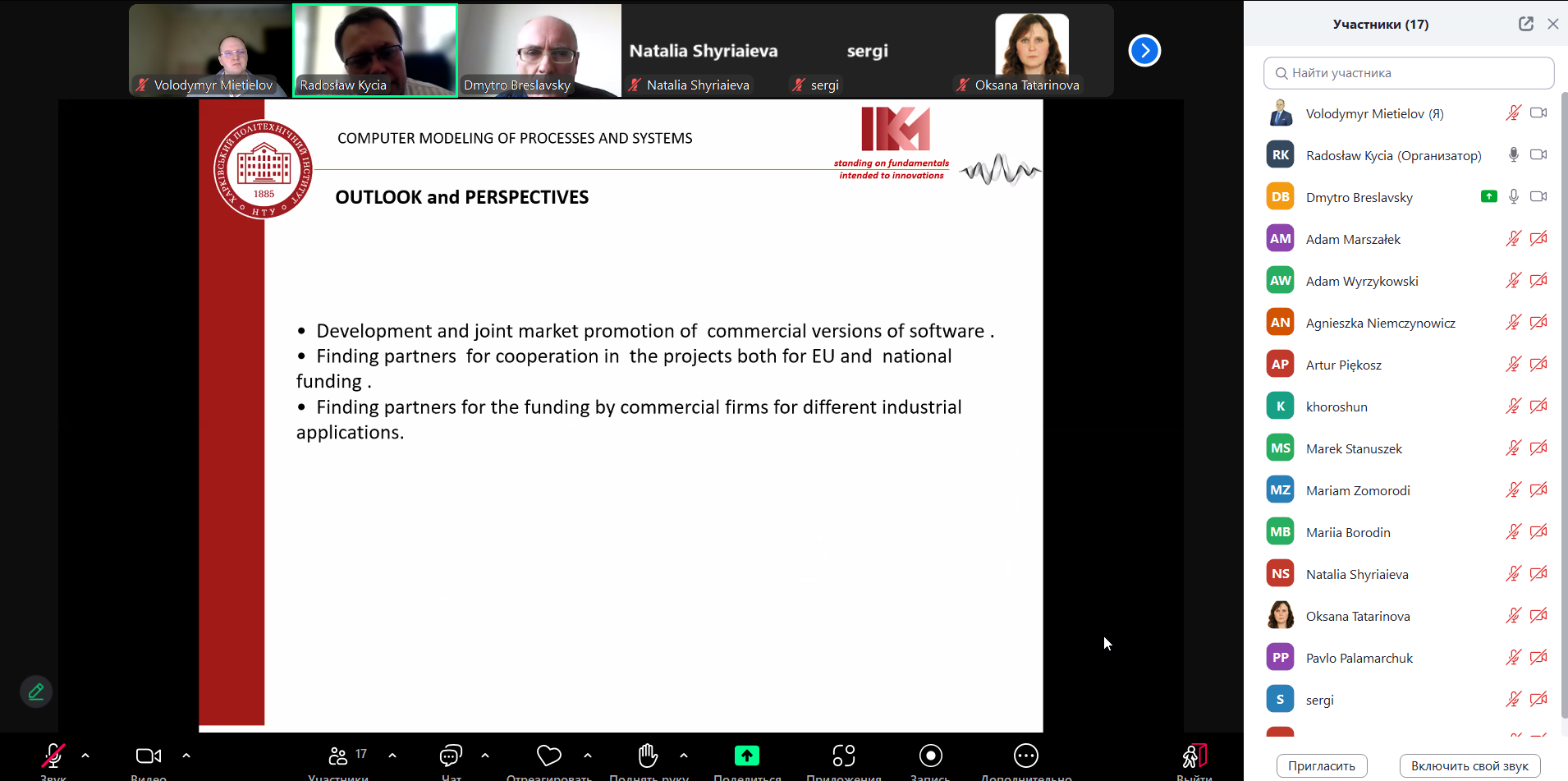 В рамках розвитку науково-технічного співробітництва між вченими кафедри комп’ютерного моделювання процесів та систем НТУ «ХПІ» та кафедри інформатики Краківської політехніки 5 березня було проведено науковий семінар. Професором Д. Бреславським було зроблено доповідь, в якій він охарактеризував сучасний стан роботи наукової групи кафедри у напрямку розробки САЕ програмних засобів для аналізу нелінійних задач, що є поширеними в аерокосмічній, енергетичній та атомній промисловості. Після обговорення доповіді, в якому прийняли участь співробітники Краківської політехніки, було прийнято рішення щодо підготовки у майбутньому нових спільних наукових та освітніх проєктів.