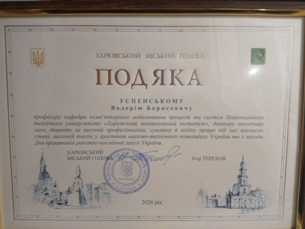 Особливо приємно відзначити, що серед нагороджених — професор кафедри комп’ютерного моделювання процесів та систем Успенський Валерій Борисович, чия наукова діяльність є вагомим внеском у розвиток навігаційних систем та управління рухомими об’єктами.