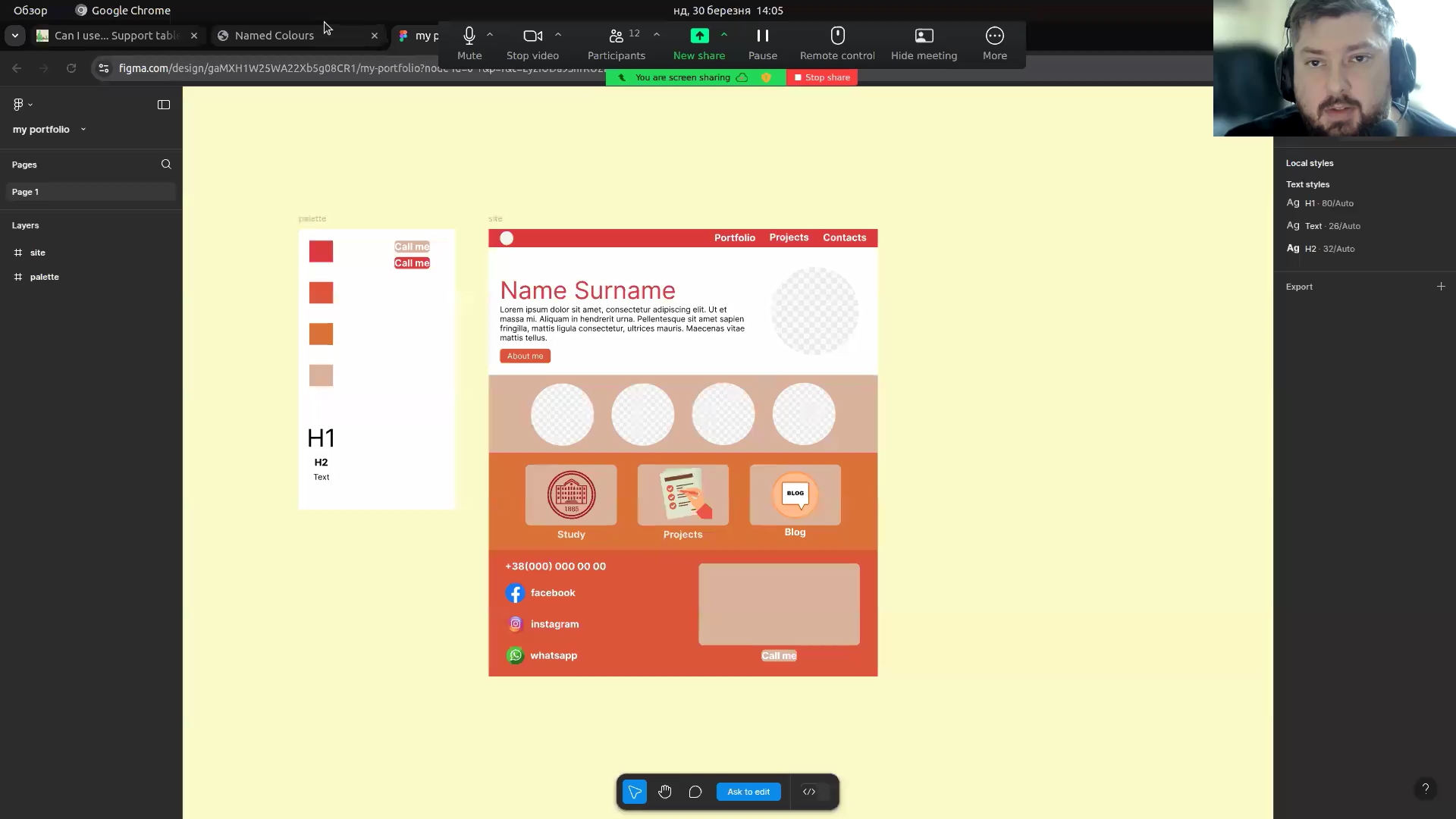Школярі дізналися, як за допомогою CSS можна «оживити» HTML-сторінку: змінити кольори, шрифти, відступи, додати стилізовані кнопки та меню 🎨🔤📱. Разом із викладачем учасники підключали власні CSS-файли та крок за кроком створювали привабливий зовнішній вигляд сайту на основі макету у Figma 🧩🖼.