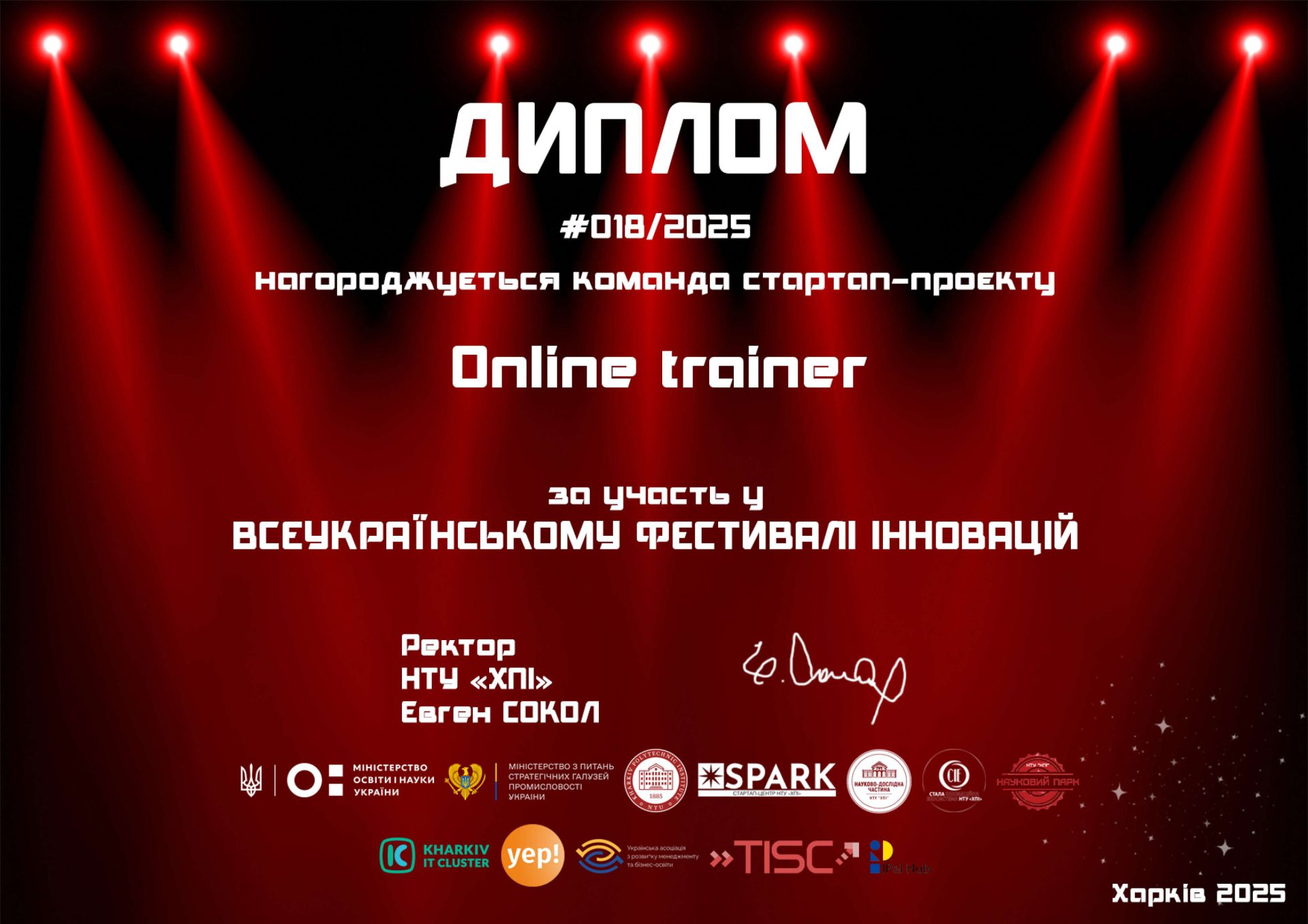На кафедрі комп’ютерного моделювання процесів та систем НТУ “ХПІ” відбувся захист проєктної роботи студентів групи ІКМ-222д Губар Софії, Глазко Віктора та Красножона Ігора, під керівництвом доцента кафедри Володимира Мєтєльова. Команда реалізувала розробку веб-платформи віртуального тренера на базі моделей комп’ютерного зору та штучного інтелекту, яка вже вийшла за межі навчального проєкту та трансформувалась у перспективний стартап.