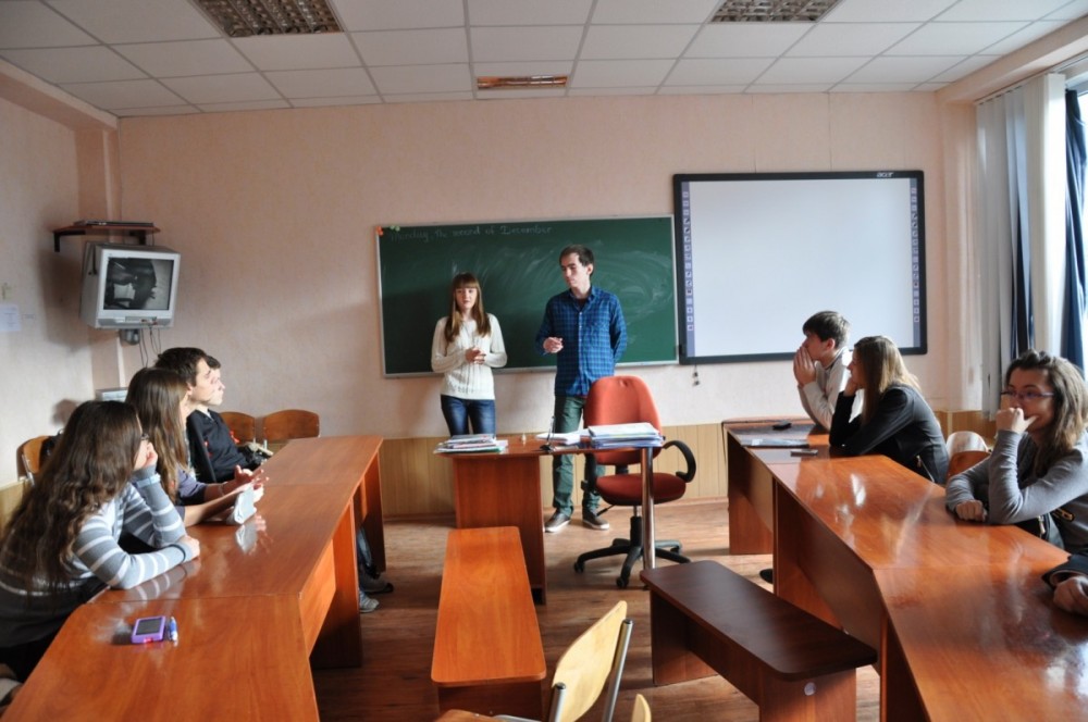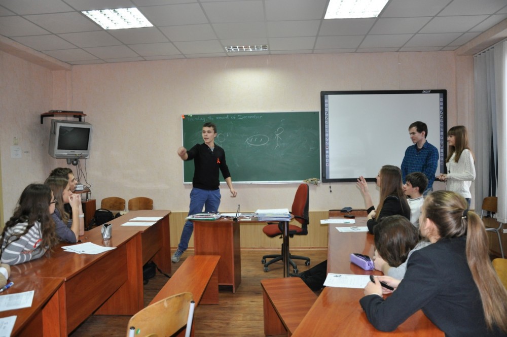 На першому уроці учні виконували різні завдання, де було потрібно показати своє володіння англійською лексикою та граматикою. Здебільшого, вони показали гарні результати, не зважаючи на деяку скованість та відсутність ініціативи.